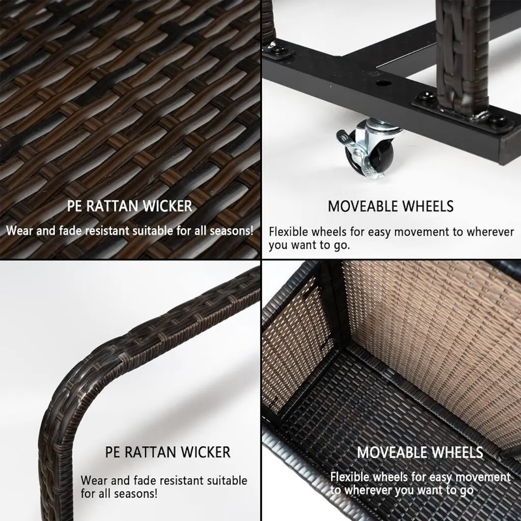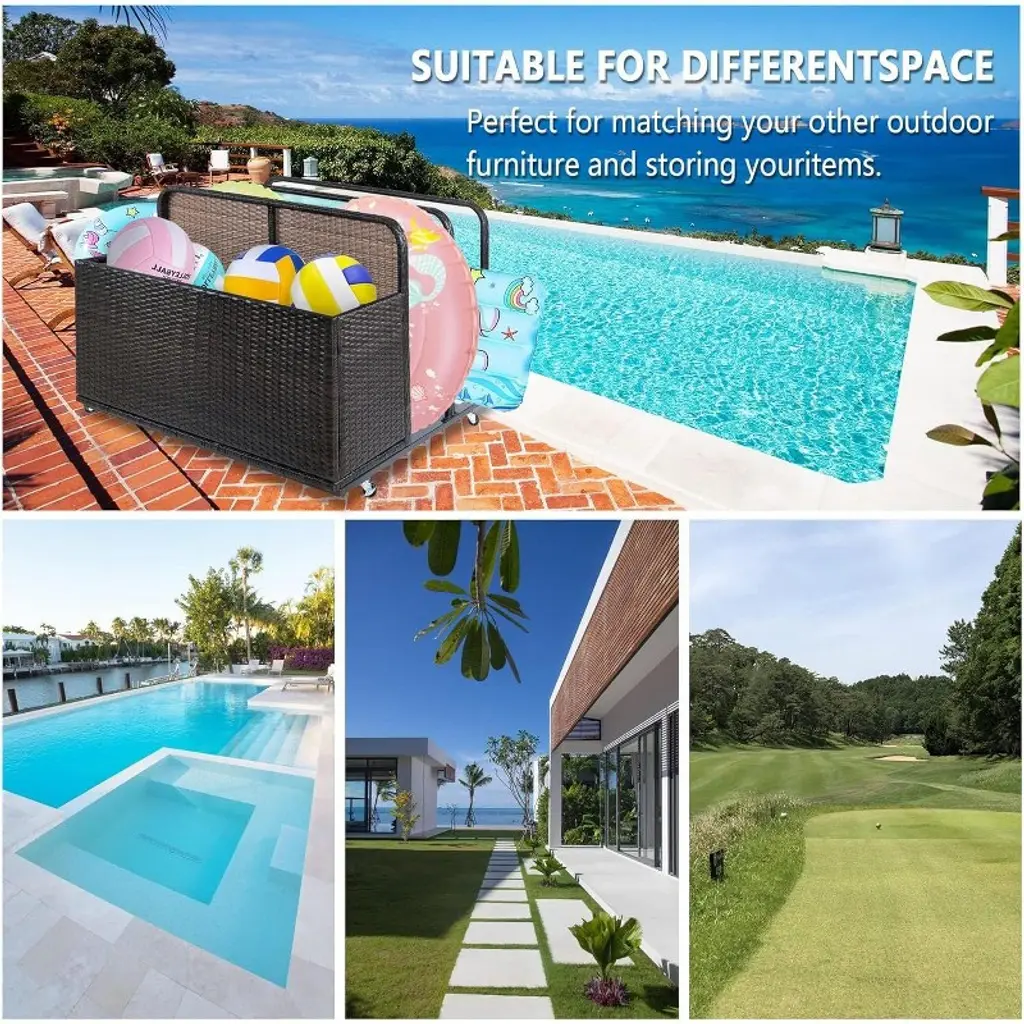 Upgrade your outdoor space with this premium poolside storage box, expertly crafted from hand-woven PE rattan and reinforced with a sturdy steel frame to provide both durability and style. Its spacious dual-tier design offers ample room for large pool floats in the main compartment while keeping towels, water toys, and smaller accessories organized in the secondary basket. Whether you're enjoying a sunny day by the pool or hosting a backyard gathering, this storage caddy keeps your space neat and inviting. Built with convenience in mind, it features two smooth-rolling wheels and two lockable casters, allowing you to easily move it across decks or patios and lock it securely in place. The raised bottom design helps prevent buildup, ensuring your belongings stay dry and clean even in damp conditions. Crafted from waterproof materials designed to withstand sun exposure and light rain, it’s perfect for year-round outdoor use in gardens, balconies, or pool areas. Quick to assemble and versatile in function, this storage box not only protects your pool gear but also elevates the look of your outdoor living area, helping you maximize space and enjoy a clutter-free environment. Whether storing gear after a day of fun or organizing essentials for your next poolside event, this poolside float storage solution offers a practical, elegant way to keep your backyard tidy and stylish.