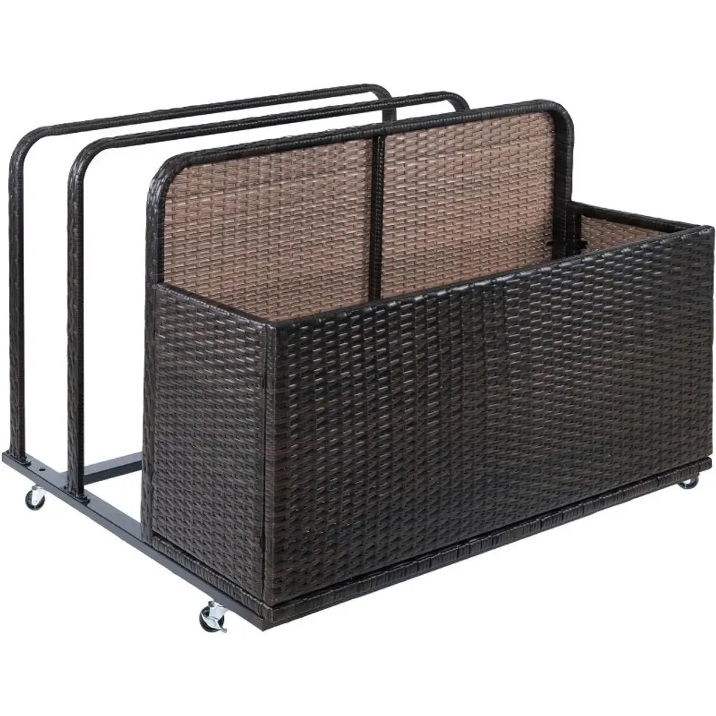 Double-layer Poolside Float Storage Box With Pe Rattan Design, Outdoor Rolling Pool Caddy For Patio, Durable Beach And Pool Storage Solution