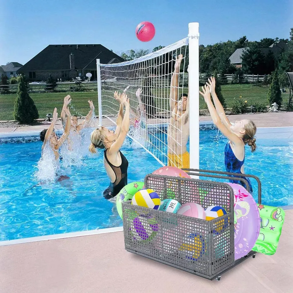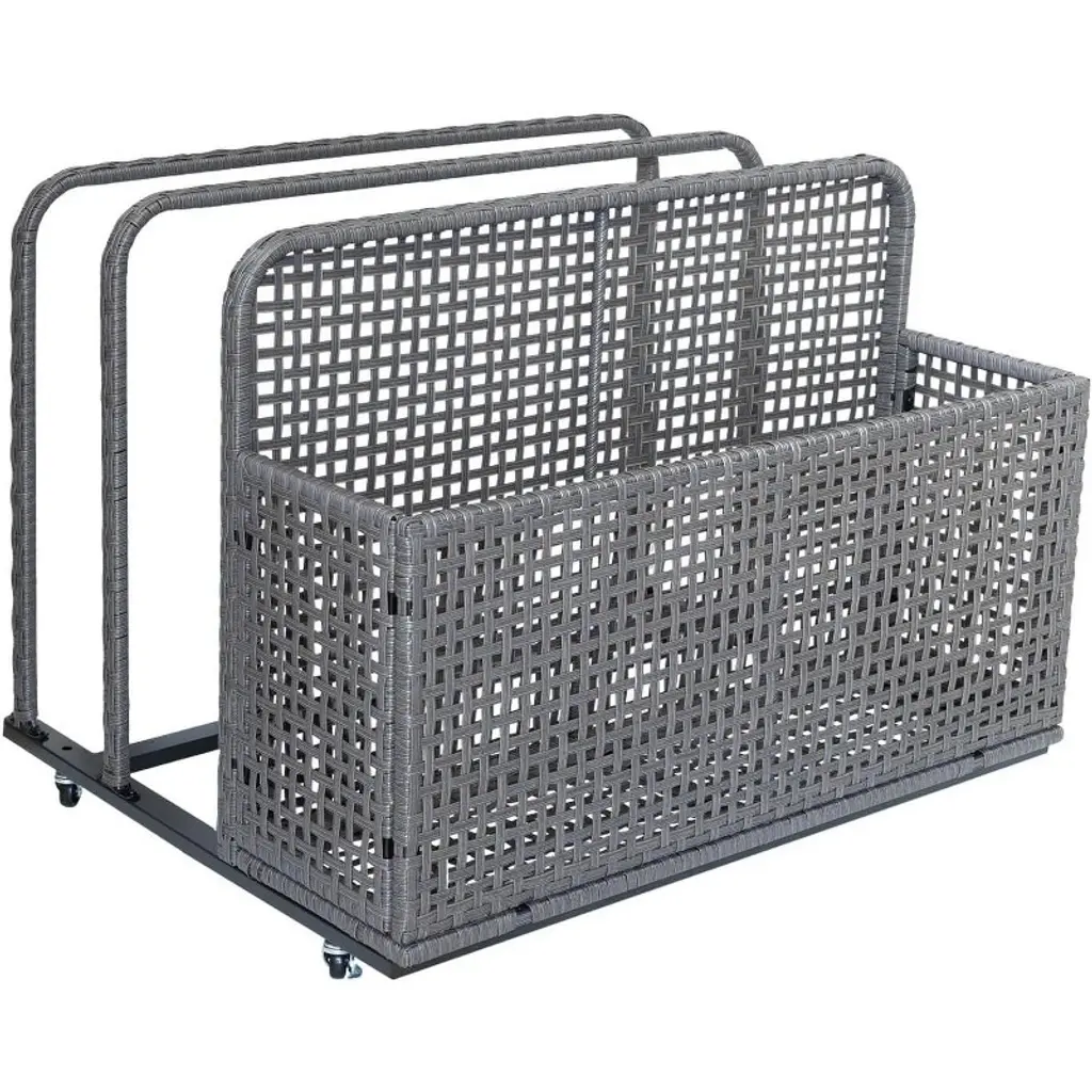 Double-layer Poolside Float Storage Box With Pe Rattan Design, Outdoor Rolling Pool Caddy For Patio, Durable Beach And Pool Storage Solution