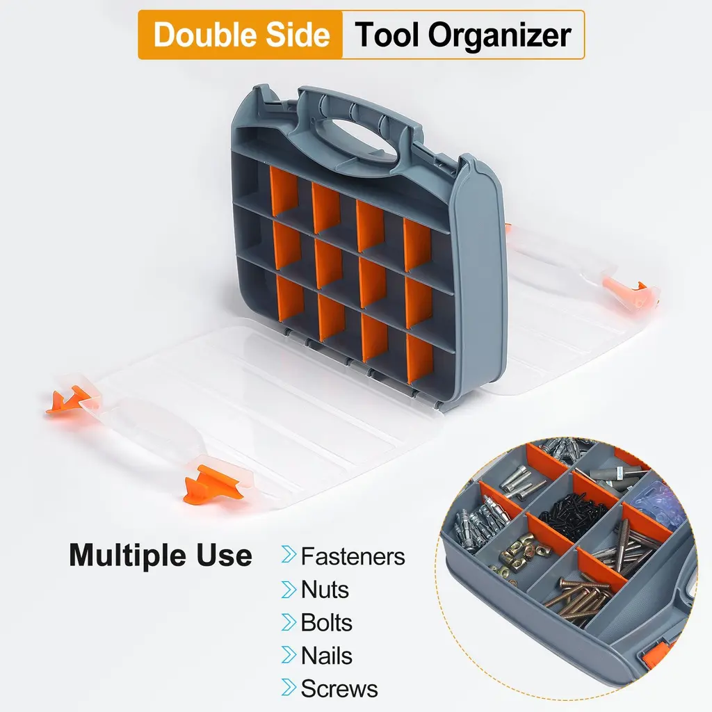 Double Side Tool Organizer 12.2"x10.2"x3" 30-Compartment Tool Storage Box - Multi - Compartment
