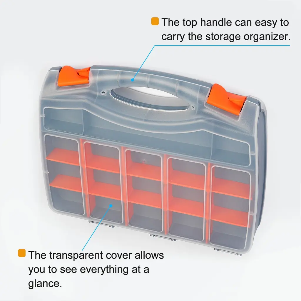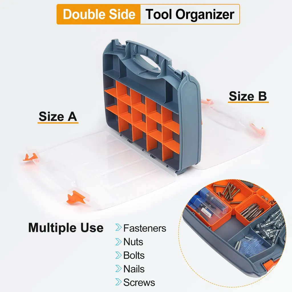 Double Side Tool Organizer 14.6"x11.8"x3.1" 25-Compartment Hardware Storage Box - Multi - Compartment