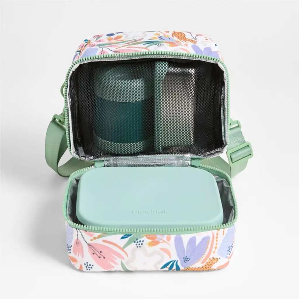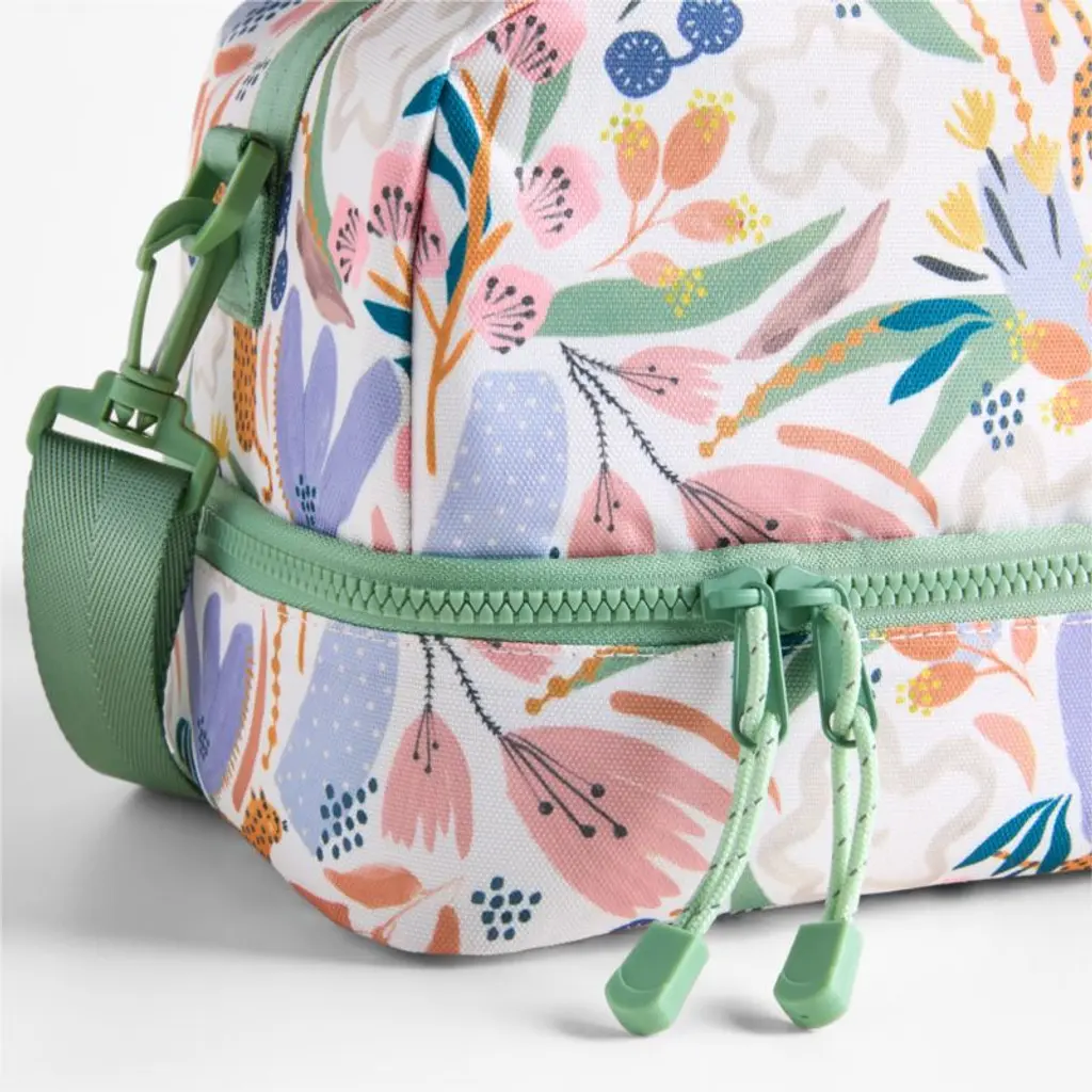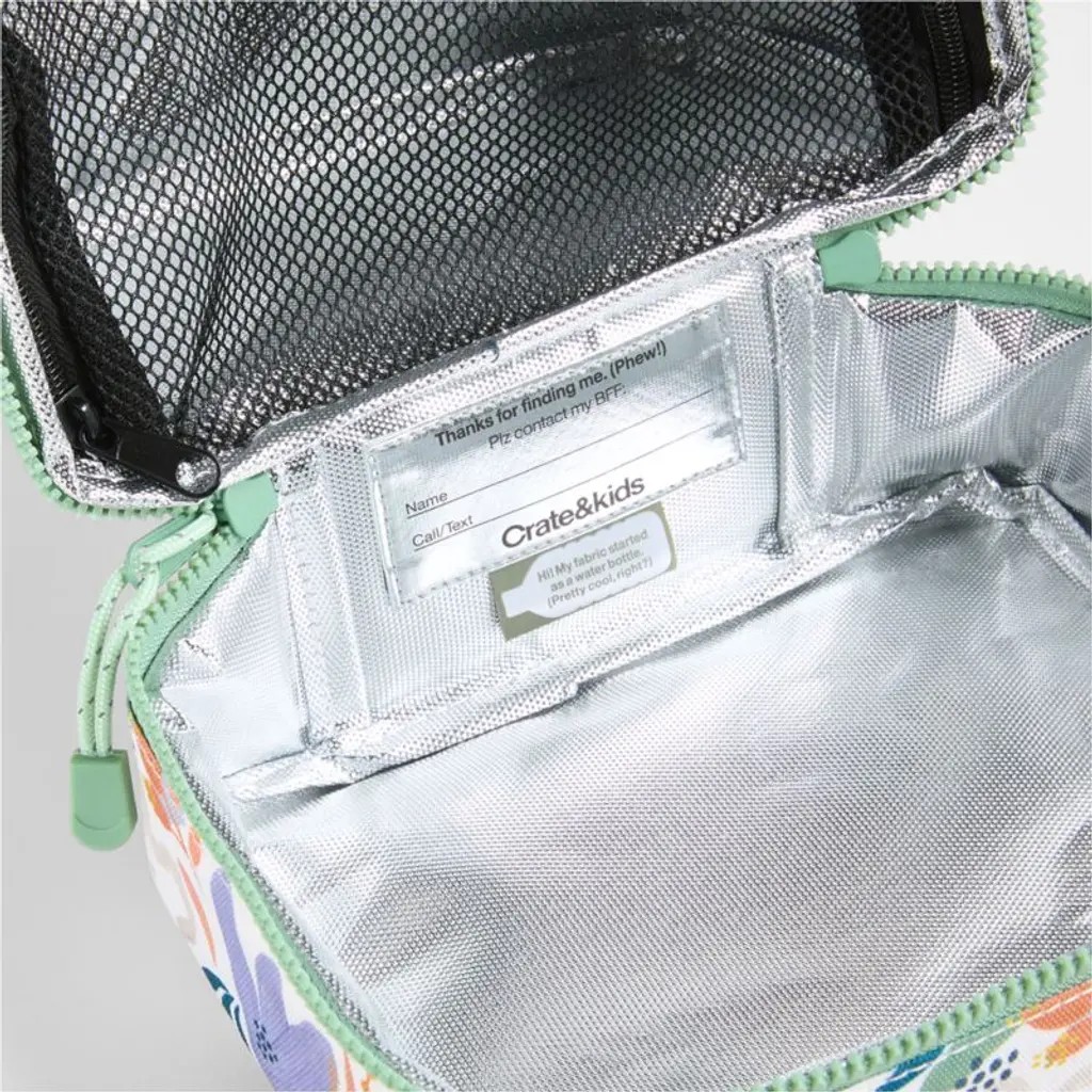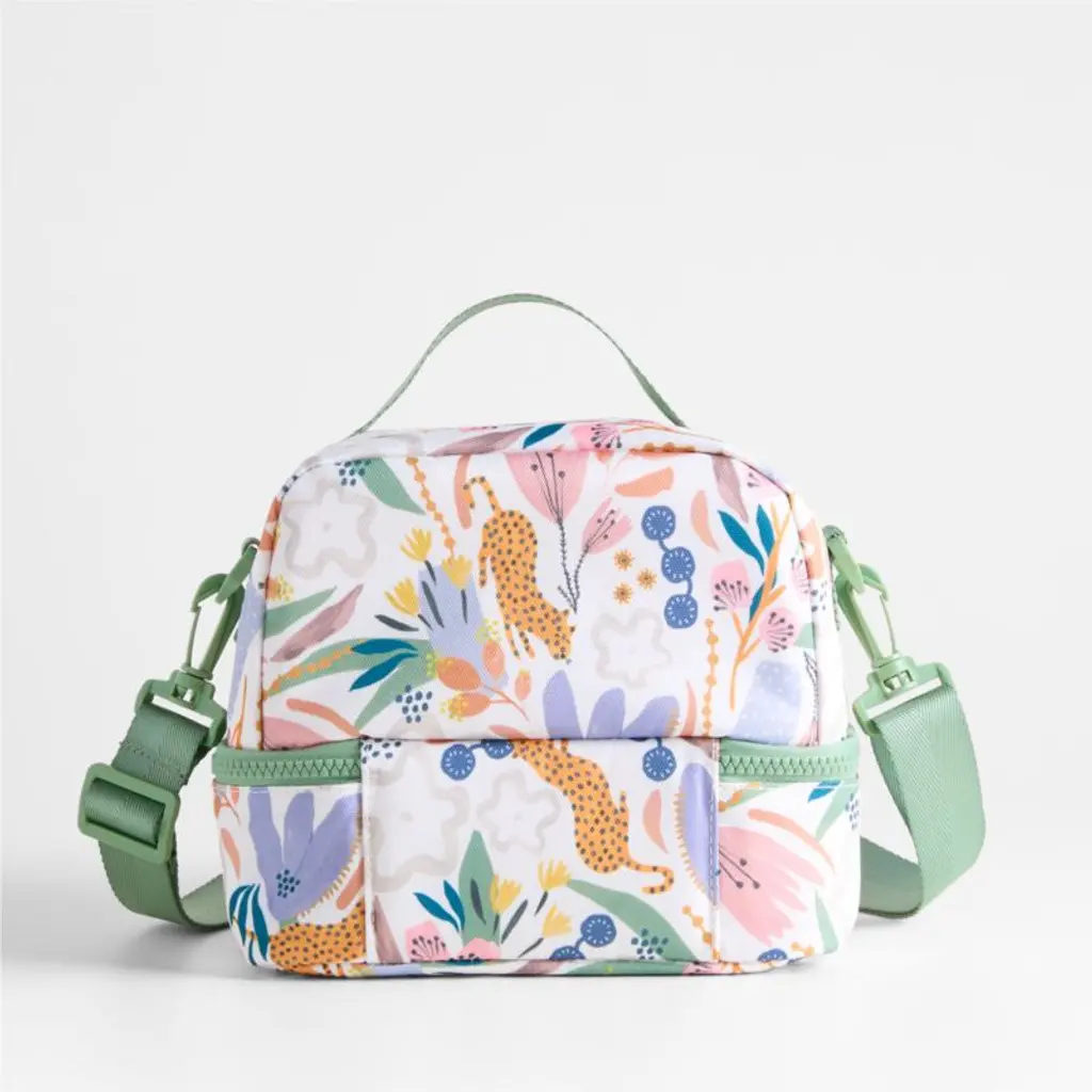 We spoke to hundreds of parents to get our lunch boxes just right. Our Dreamer Dual Compartment Lunch Box is perfectly sized to fit multiple food containers and a water bottle, with an interior divider to keep everything securely in place. In durable, insulated and easy-wipe polyester (that includes recycled plastic bottles), our lush Leopard Floral print stands out in a sea of lunch boxes. For extra personality, have it monogrammed with their name or initials.