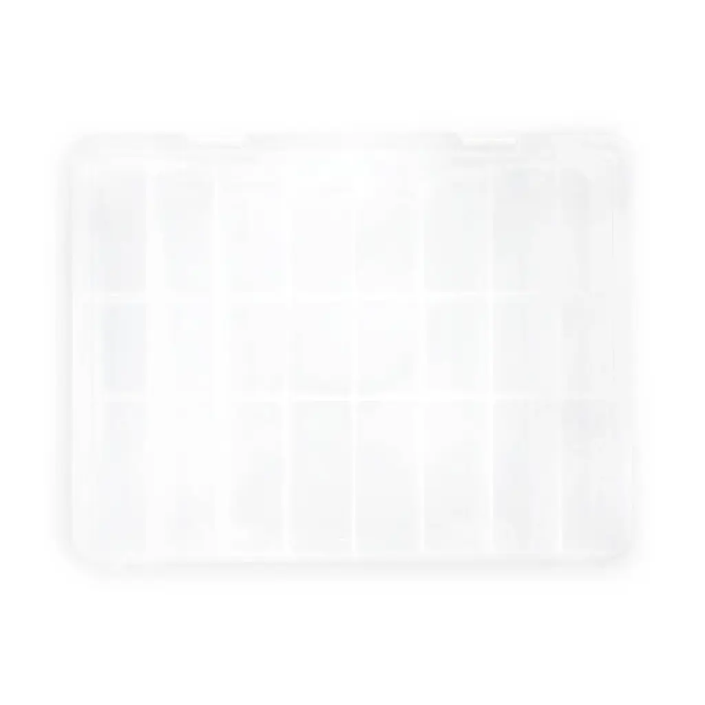 Keep your thread spools organized and dust-free in the double-sided Dritz Thread Storage Box. The box contains removable dividers so your various types and sizes of thread spools can be stored in the same box. The sturdy box features a handle on the end the box for easy carrying and it folds down for compact storage.