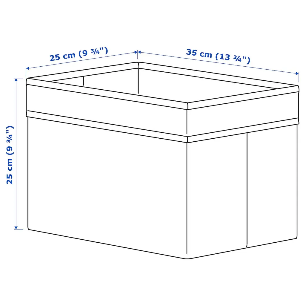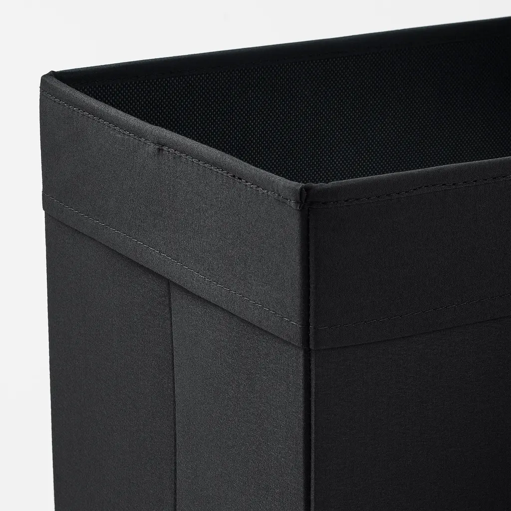 DRÖNA Box - black 9 ¾x13 ¾x9 ¾ ". Ideal in BILLY bookcase (depth 11 in), BESTÅ storage (depth 15¾ in) and in other storage that is at least 9⅞ in deep. The box is easy to pull out regardless of where you place it since it has integrated handles on two sides.