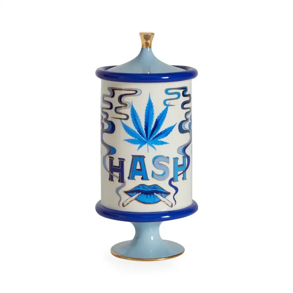 Dream Catchers. Expand your horizons with our Druggist Canisters. Dreamy third-eye mindscapes rendered in Delft-inspired blues and accented with real sparkly gold. High-fired porcelain elevates the experience. Stash your secrets in a single trippy vista, or cluster all four to create your own surreal apothecary.