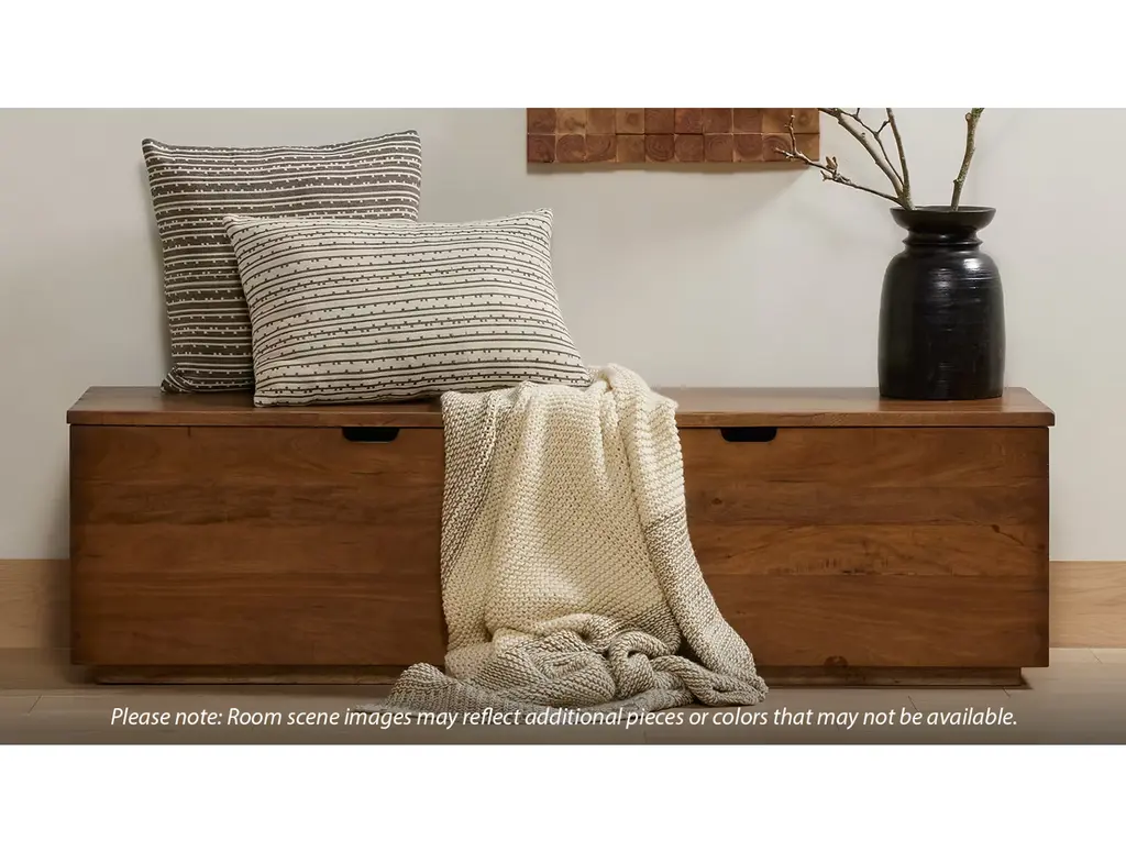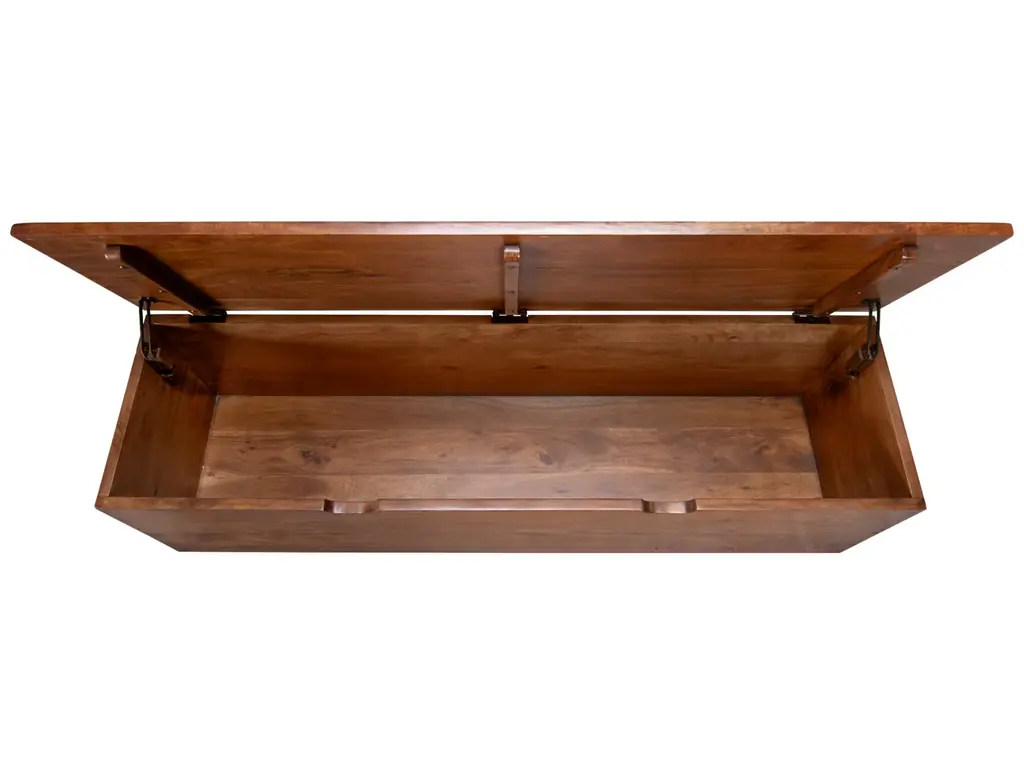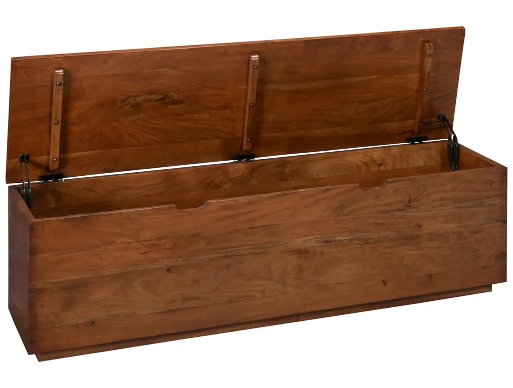 Add rustic storage to your living space with the Duncan Trunk from Four Hands Furniture. This traditional-style trunk is constructed of reclaimed fruitwood, and boasts a minimalist rectangular profile with a plinth base and an easy hinged top. Perfect for storing extra blankets and other home essentials.