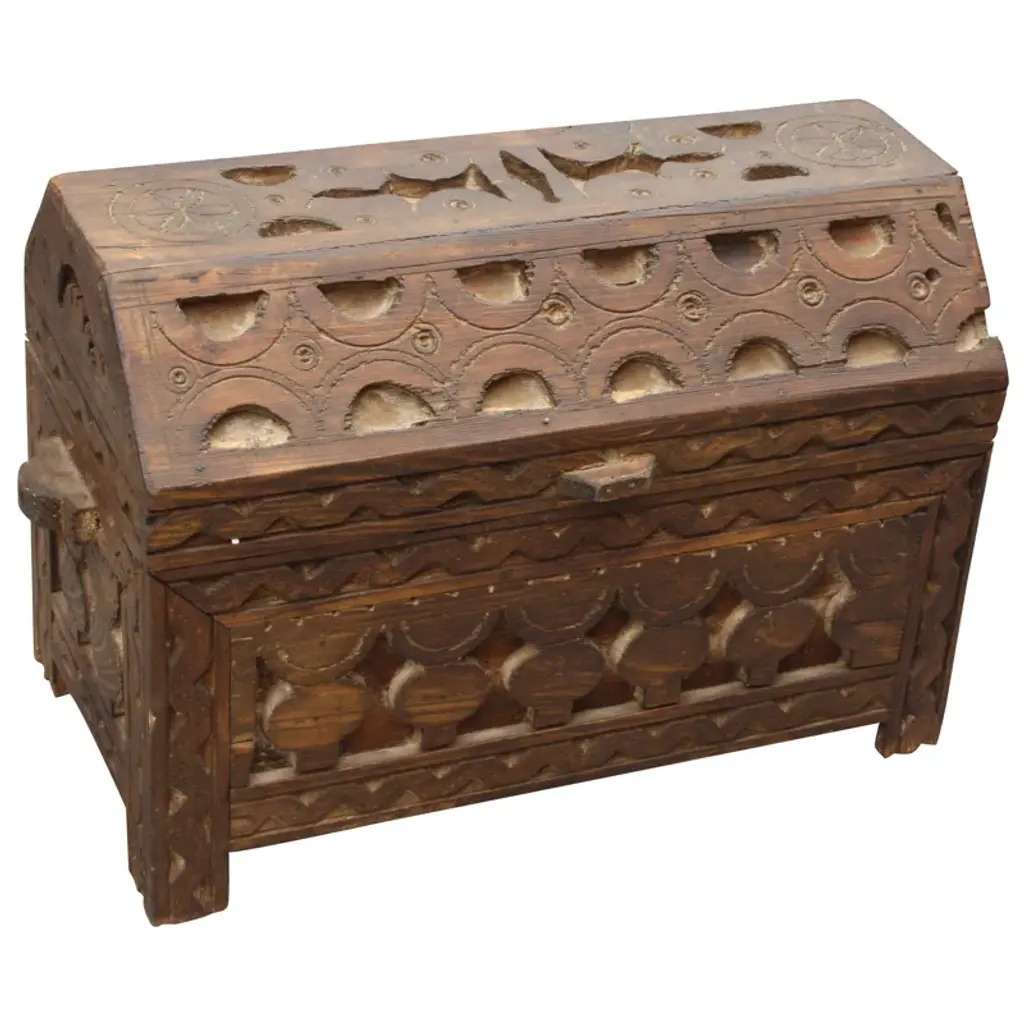 Early 20th Century Indian Carved Wood Storage Chest Box
