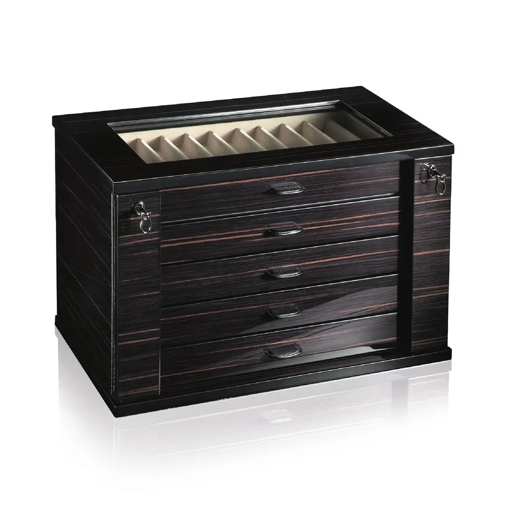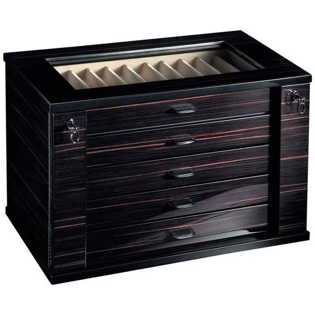 Since 1949, Agresti has crafted the pinnacle of luxury safes, trunks, and jewelry boxes in Florence, using only the finest materials, including full-grain leather, exotic woods, and textures like shagreen. As the premier name in high-end, custom solutions for safeguarding valuables, Agresti integrates cutting-edge security features: biometric access, secret compartments, unique keys, and hidden doorseverything you see in movies, they make real. Favored in multimillion-dollar estates, yachts, and private jets. Contact us to discover more about this exceptional product. Store your cufflinks in style with our Ebony Extendable Cufflink Box from Agresti Collezioni Gemelli. This polished ebony chest can hold up to 54 pairs of cufflinks and can easily be extended to hold up to 90 pairs. Keep your accessories secure and organized with this exclusive and luxurious accessory.