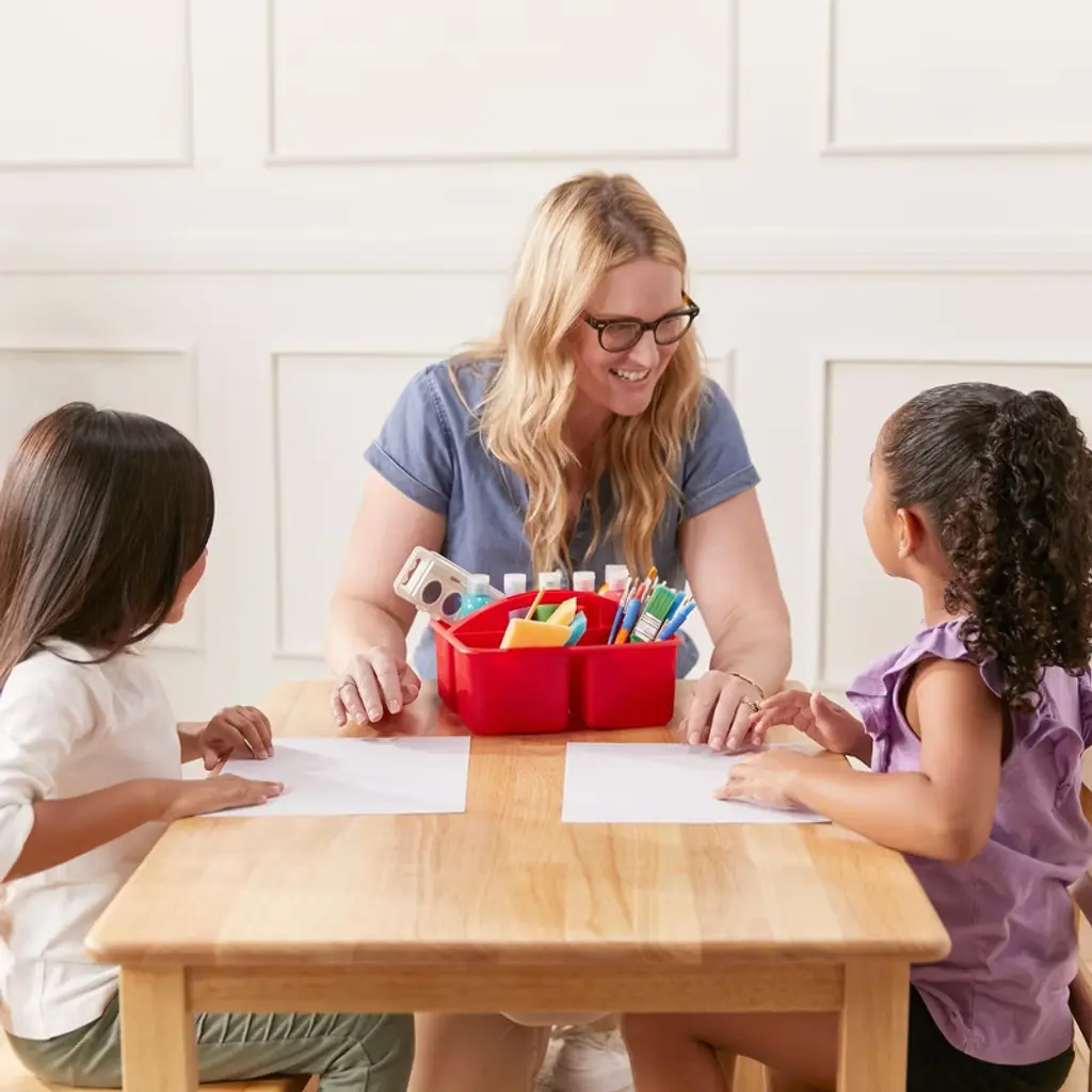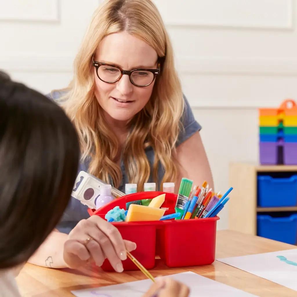 Cultivate a collaborative environment with ECR4Kids 3-Compartment Small Caddies. These sturdy supply organizers are perfect for teachers and educators to use in the classroom or library. Plastic bins provide a storage solution with endless possibilities for office supplies, writing utensils in a home, or toiletries in a college dorm. Each of the three compartments is designed to keep small items organized on and off the floor. In the classroom, caddies help while facilitating lessons and encourage team-oriented activities. The versatile storage containers are easily transported to workstations to conduct art lessons, science experiments, or STEAM activities. Use compartments to sort objects by color, size, shape, or any other characteristic. Create themed kits for subjects such as a weather kit with thermometers and charts. Store art supplies for paints, brushes, clay, and other materials. Little learners will learn the importance of organization by returning pens, scissors, glue, and crayons to the intended compartment during cleanup. Keep track of school supplies and personal belongings by having a specific place with structured compartments. Supply organizers feature rounded edges, an easy-to-grasp scoop center handle, and a curved interior to simply remove contents. Caddies conveniently nest to save valuable classroom space.