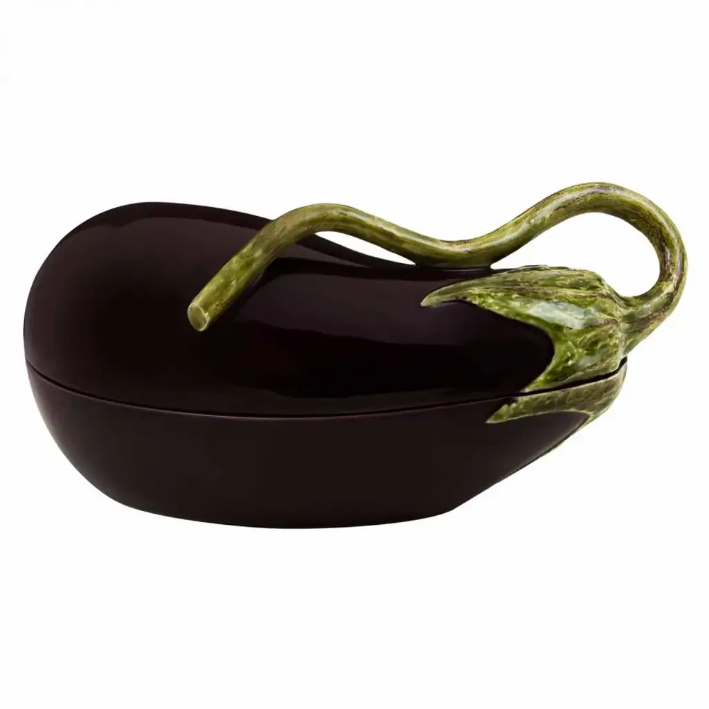 Brighten up a table, étagère, or nightstand with this 11-inch lidded box designed to replicate an eggplant. The earthenware box was meticulously crafted using time-honored artisanal techniques.