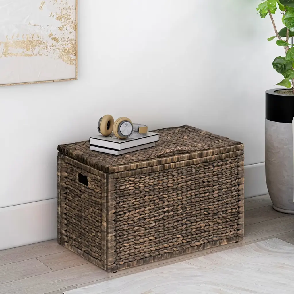 Ehemco Heavy-duty Water Hyacinth Wicker Storage Trunk With Metal Frame, 30 By 17.5 By 17.5 Inches, Light Brown Wash