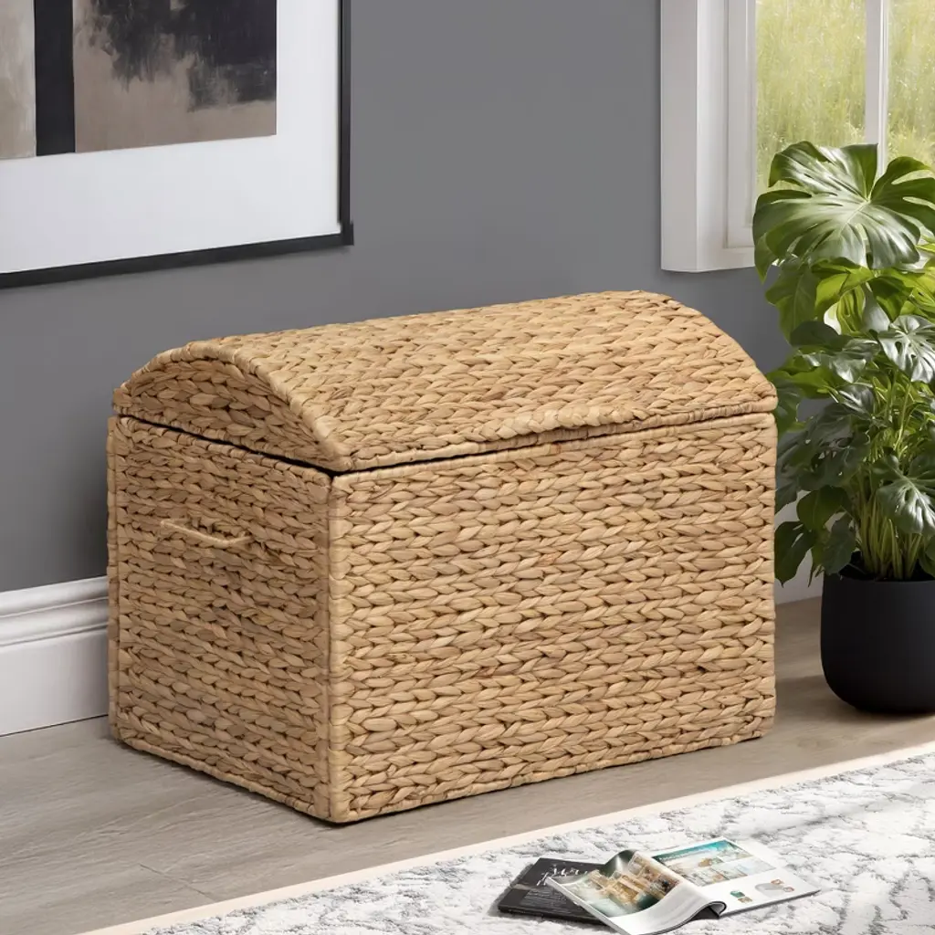Ehemco Heavy-duty Water Hyacinth Wicker Storage Trunk With Metal Frame And Arch Lid, 20.5 By 14.5 By 16 Inches, Natural