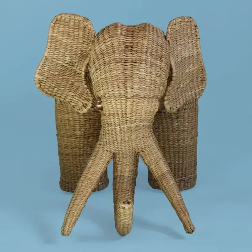 Mario Lopez Torres Large Elephant Trunk. There are minor imperfections to the hand-made woven rattan. Signed Mario Lopez Torres Est. 1974. Brass accents. (see photos)