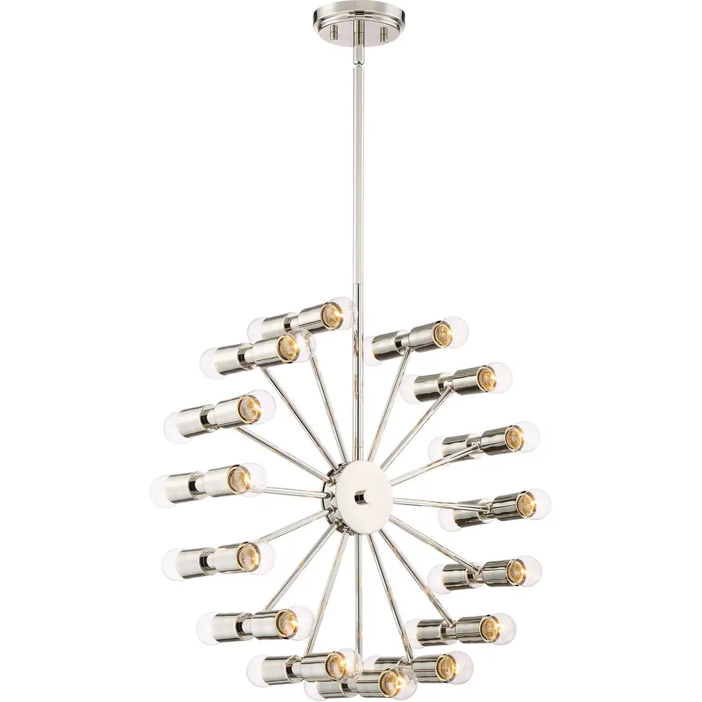 The collection displays an explosion of light from a center core with optional vintage bulbs and thin arms on a starburst style frame finished in Oil Rubbed Bronze.