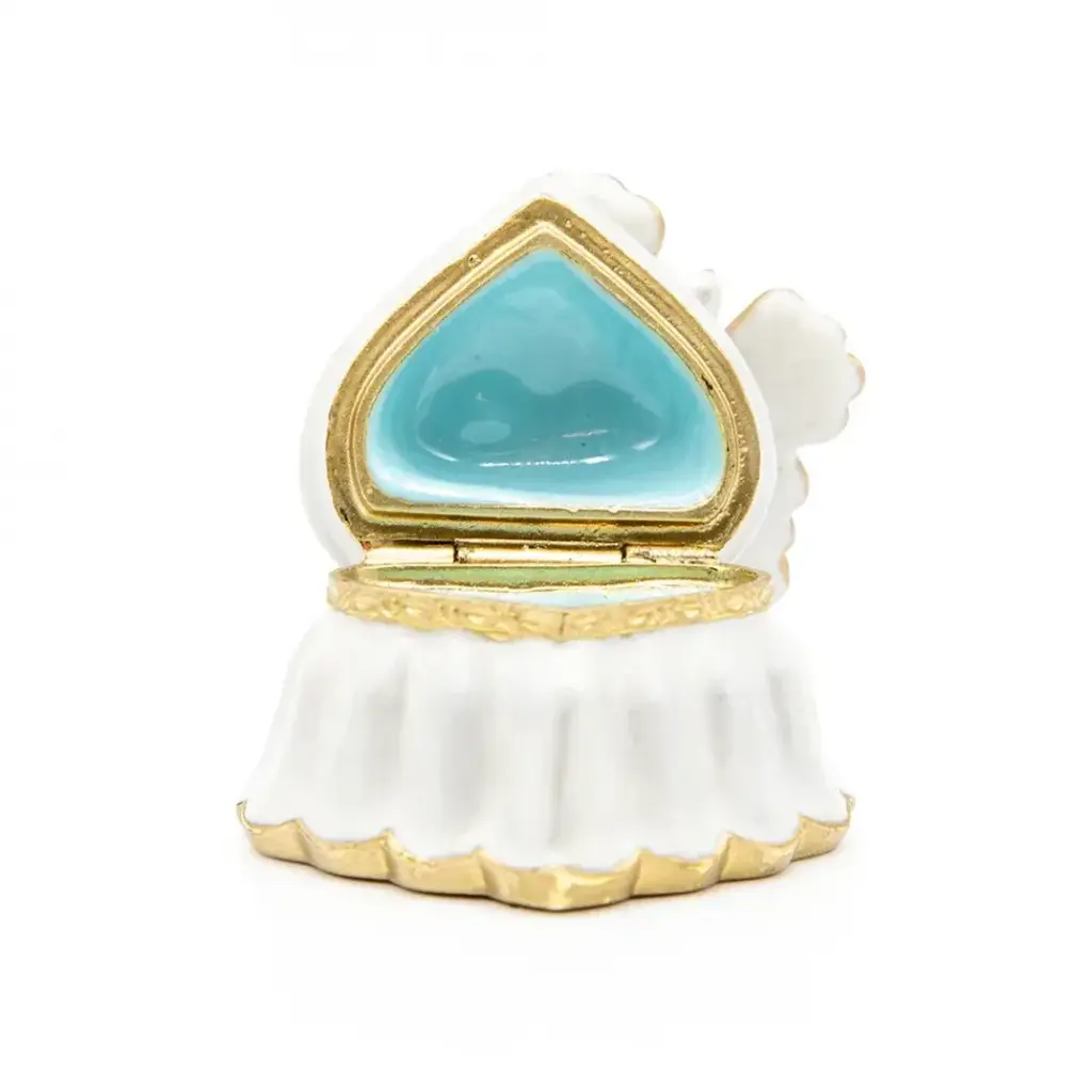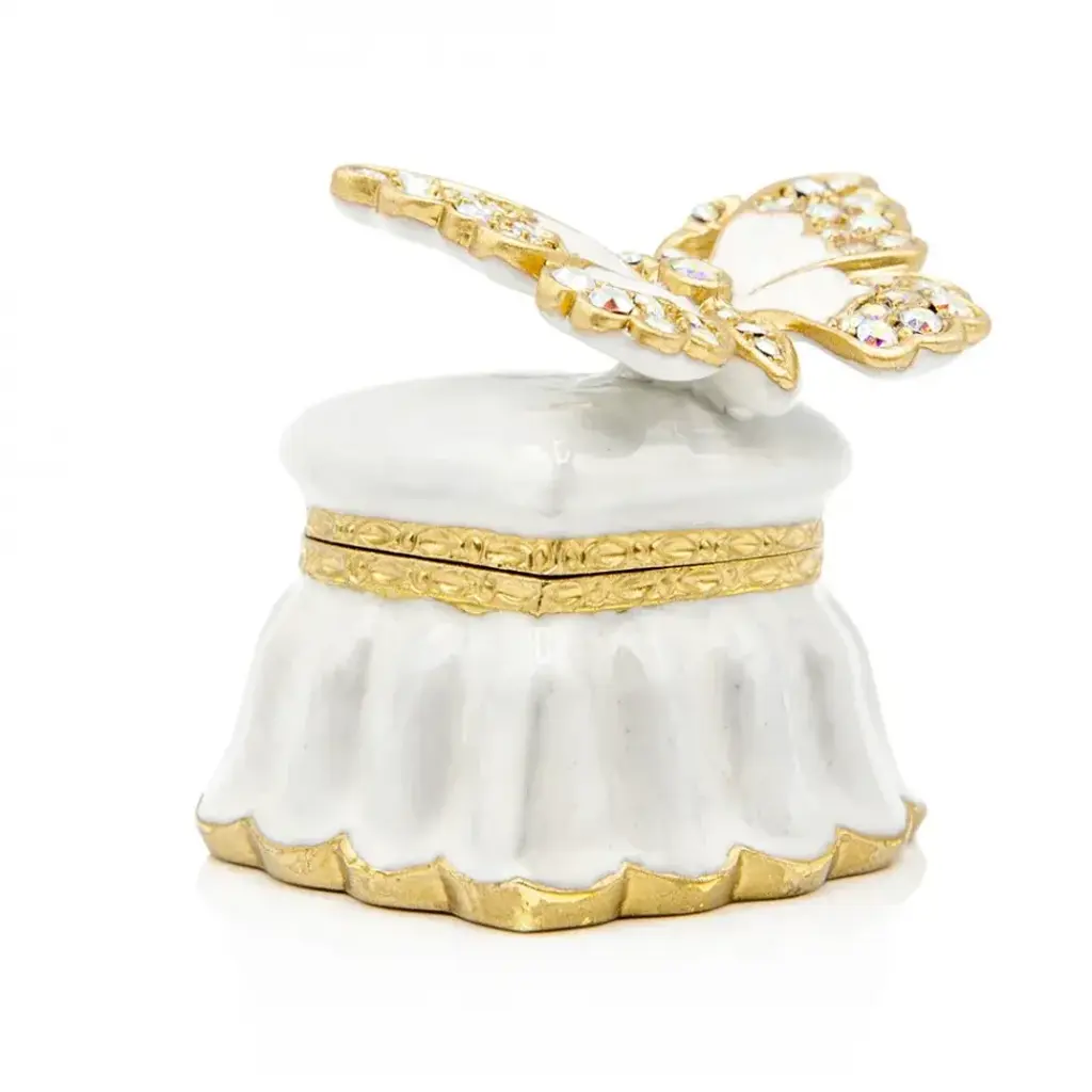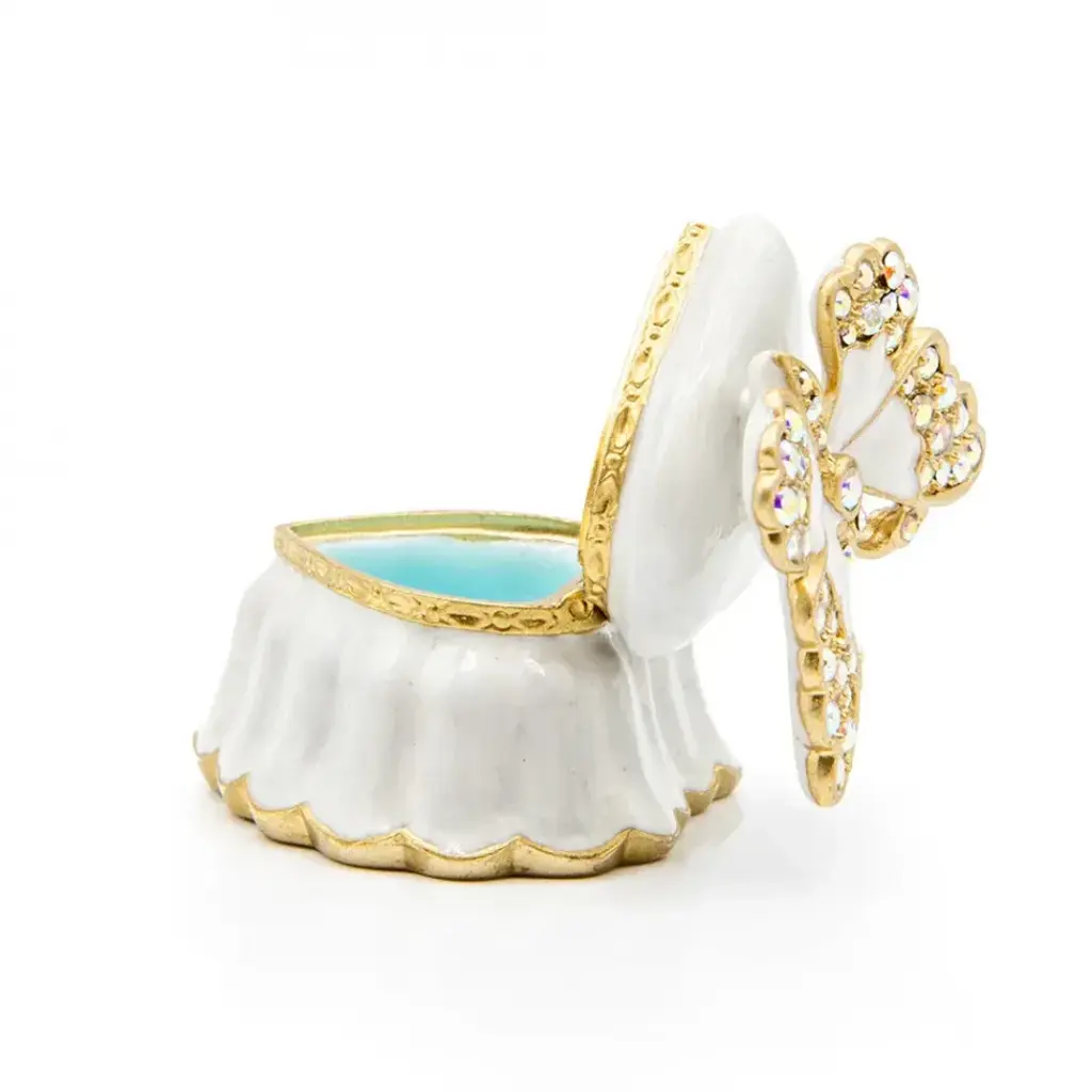 The lovely Emma Mini Heart Box is adorned with a hand-enameled butterfly, sparkling European crystals, opal hues on the outside, and a sweet something blue inside. With its 14k matte gold light brown antique finish, this box captures the essence of timeless love and refined taste. Whether you're giving it as a gift or keeping it for your own treasures, this enchanting box is sure to delight with its delicate charm and enduring allure.