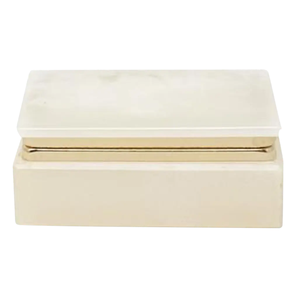 The Encased Quartz Box is a stylish decorative vessel that showcases a rich cream color, with a stunning lid of clear crystal sitting flush with the box. Resting at the top, a gorgeous piece of natural quartz completes the look.