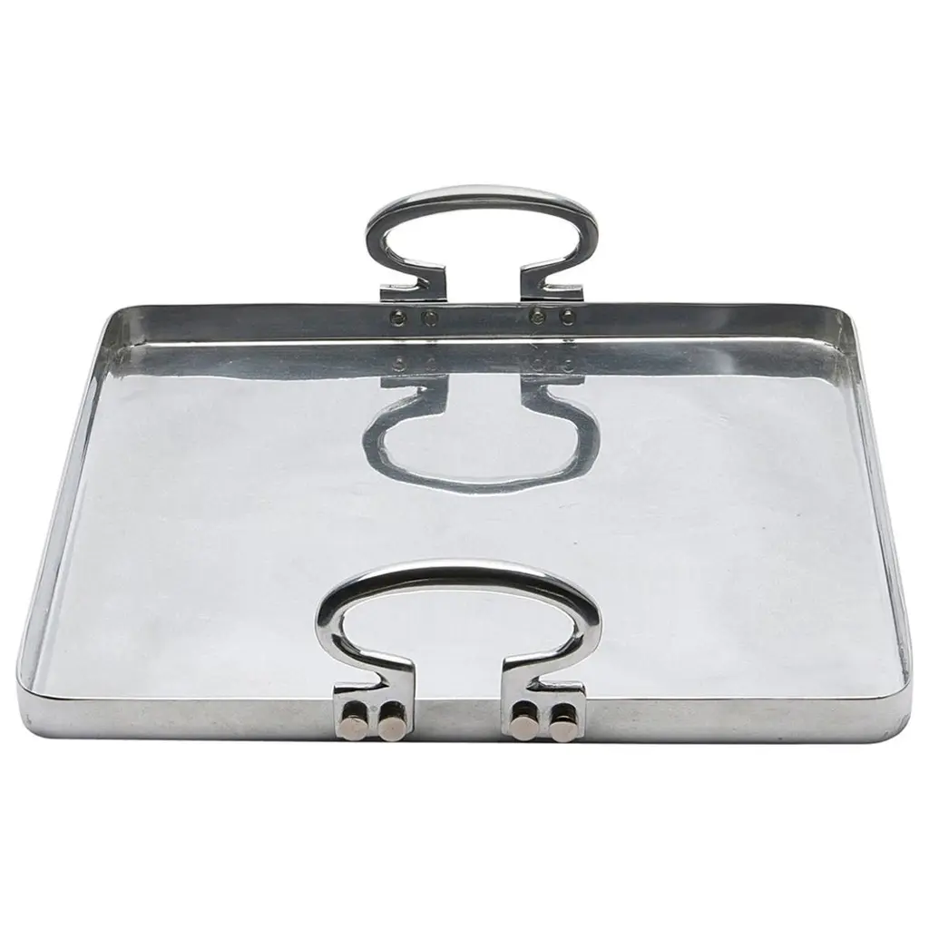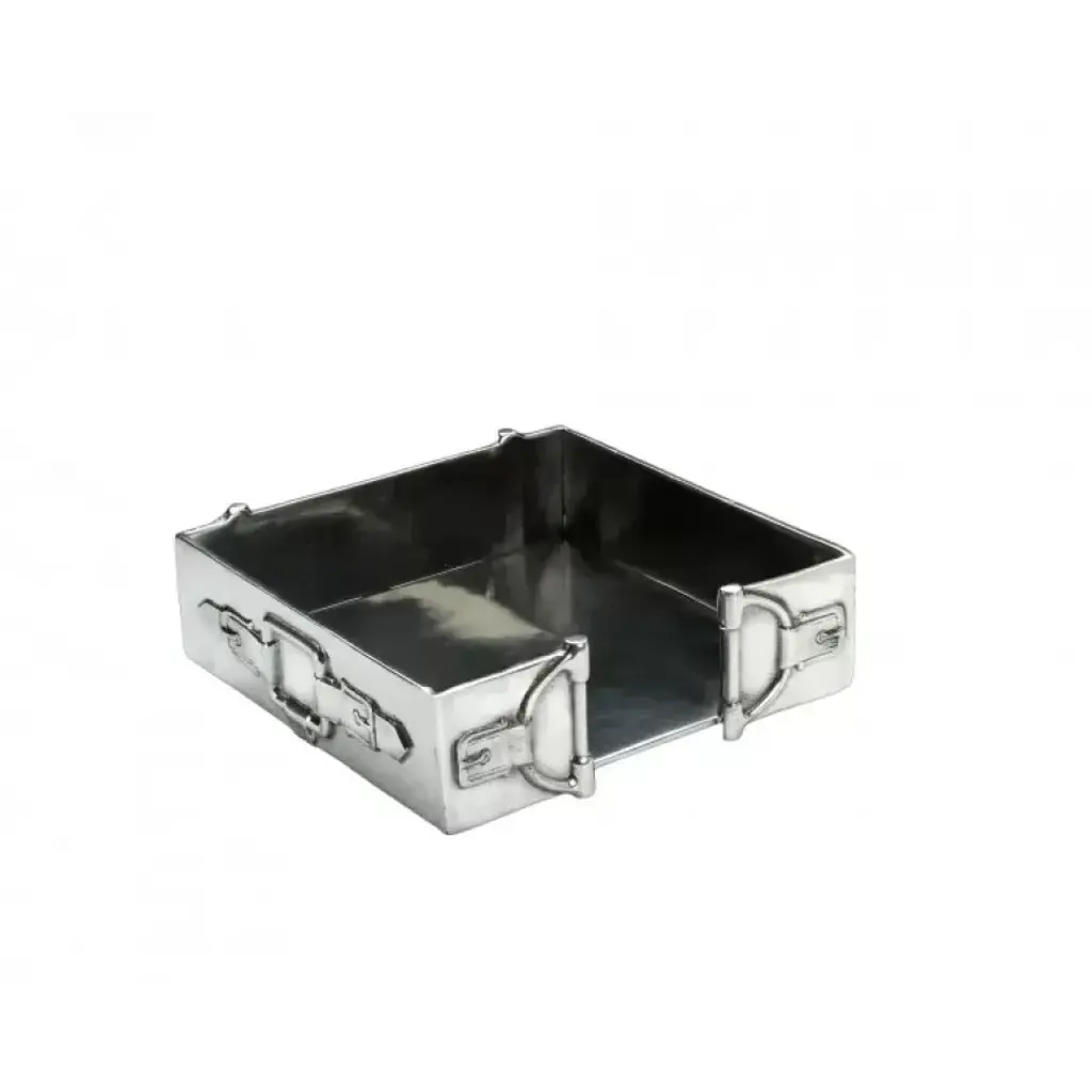 Thrill your guests with the realistic detail in this Equestrian Lunchen Napkin Box from Arthur Court. This lunchenon napkin features leathery straps and buckle on each side. The half-piece bits are also crafted on either edge of the gap in this handmade, aluminum box.