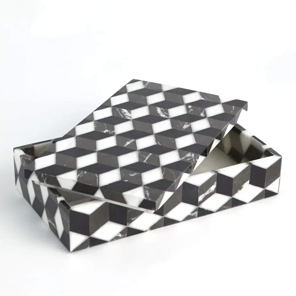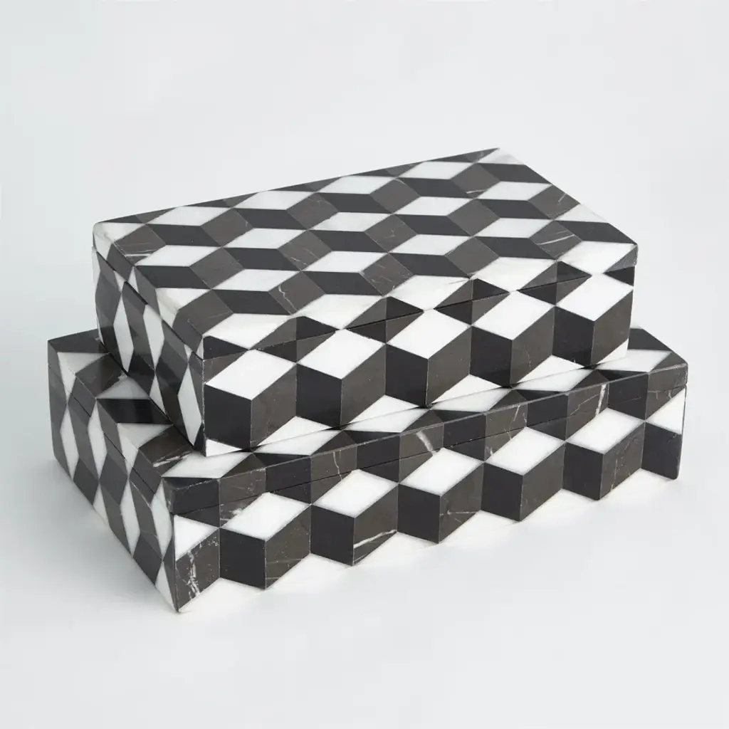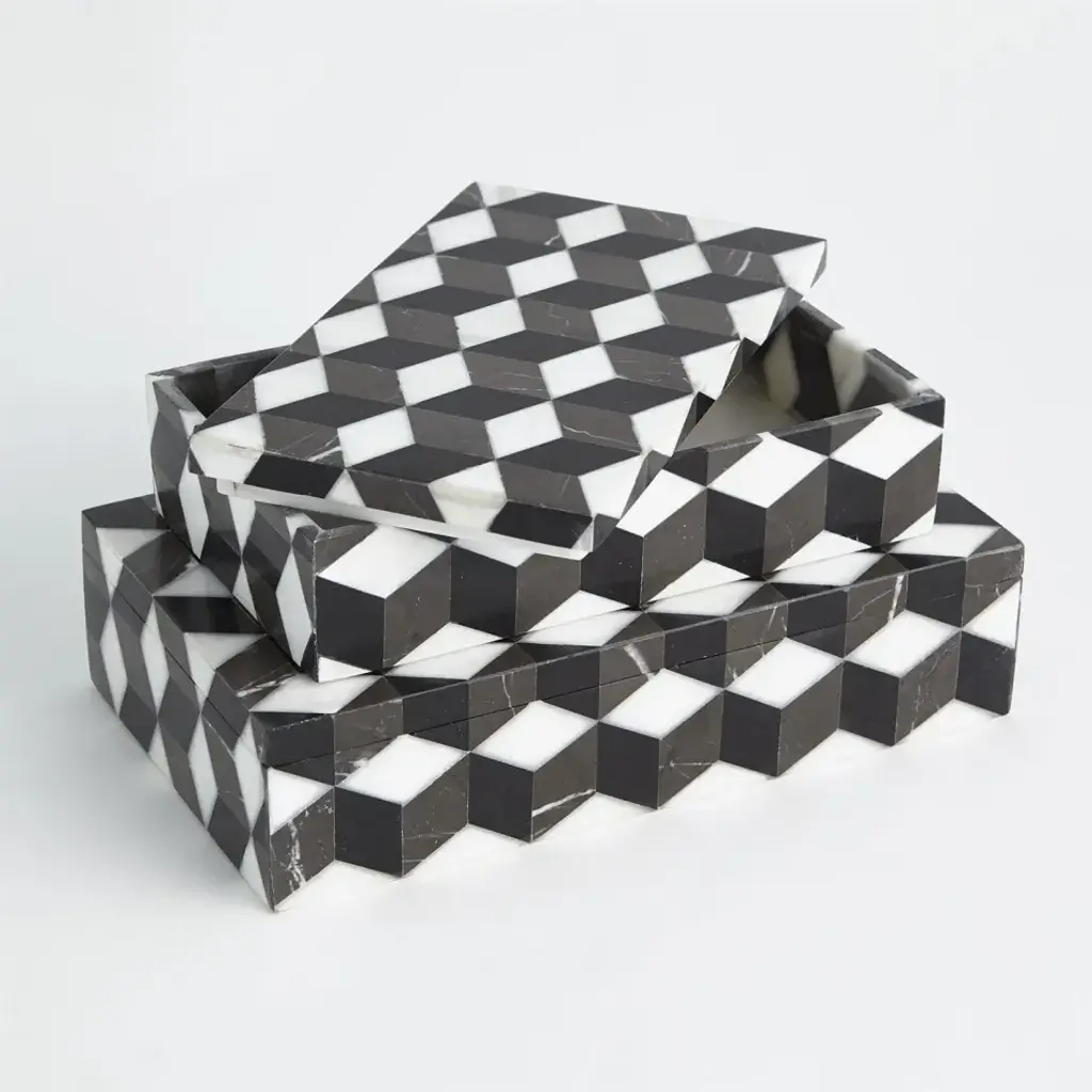 Functional storage boxes with three colors of marble (black, grey and white) veneered into an M.C. Escher inspired design. From a fashion forward perspective, Global Views offers accessories, furniture, statement lighting, and an assortment of rugs and mirrors to add beauty and joy to your home.