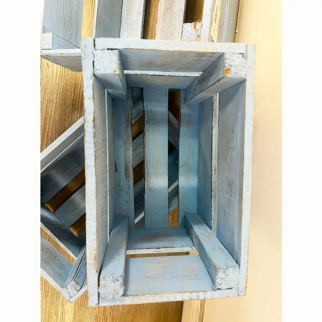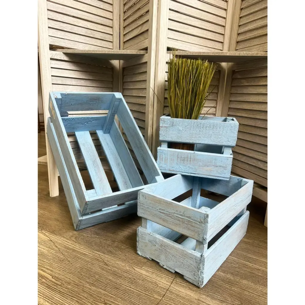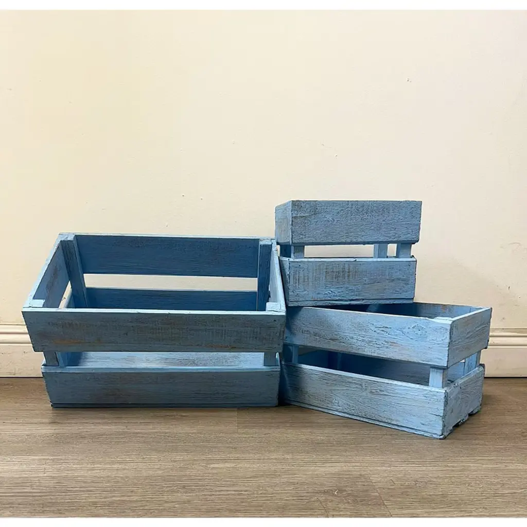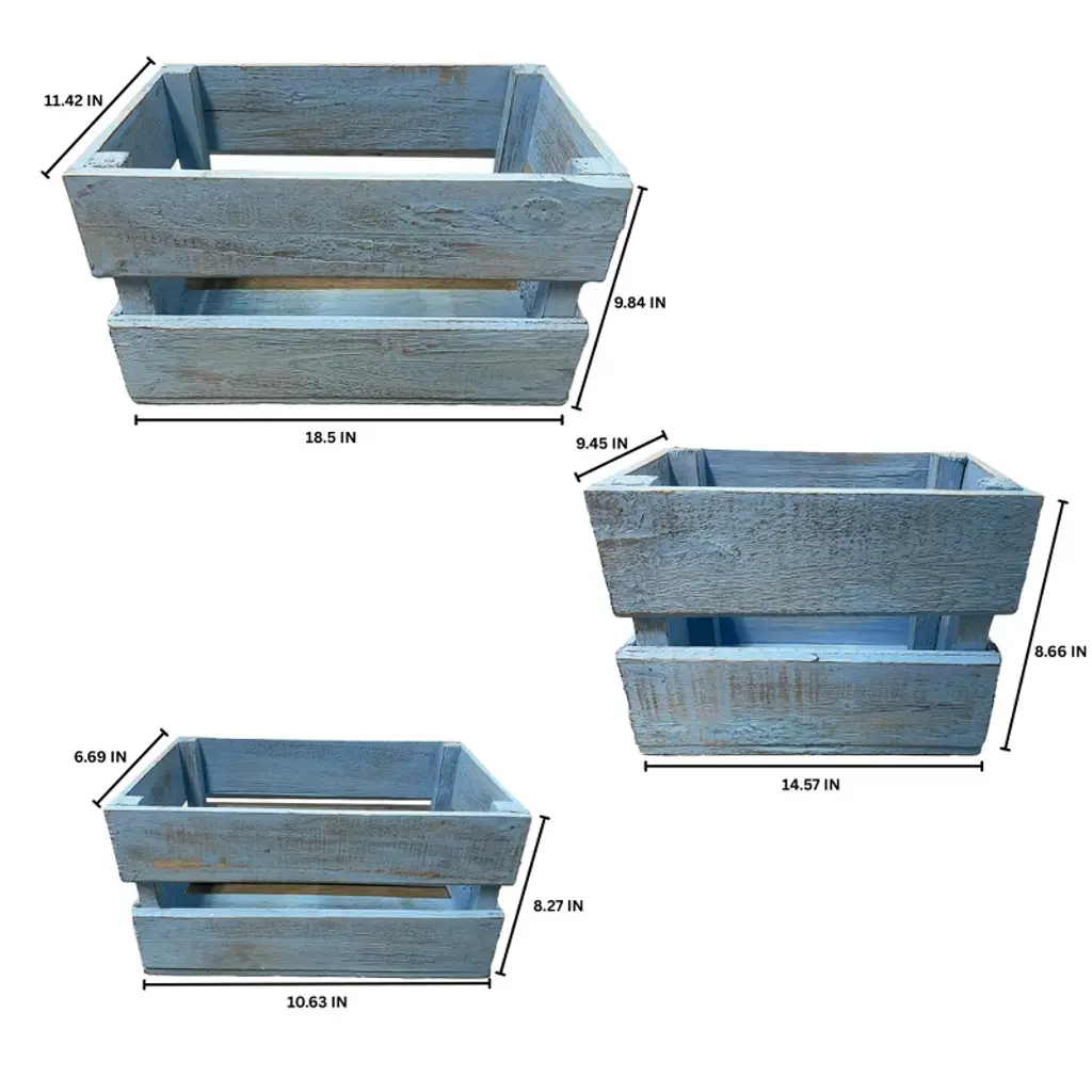 Essential Decor & Beyond 3-piece Set Blue Washed Nested Albasia Wood Crates Storage Palette Boxes
