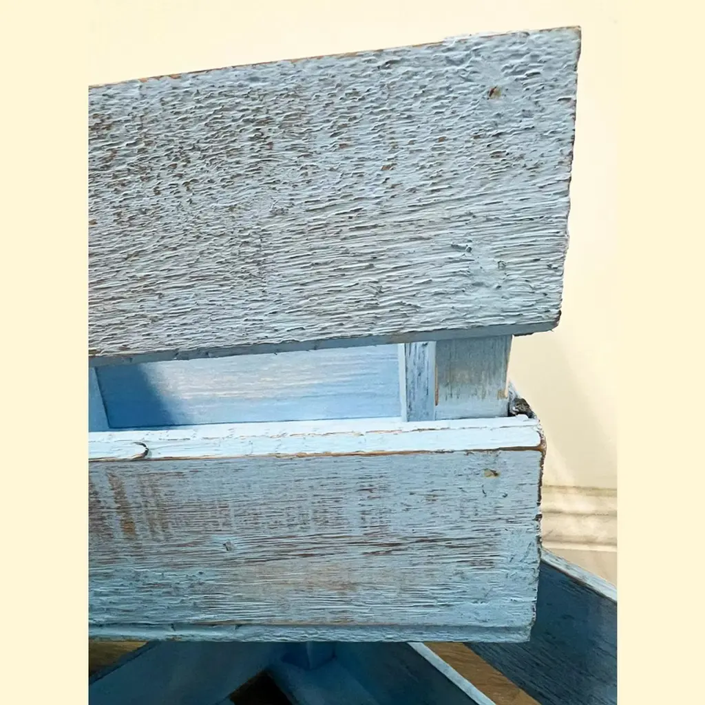 A set of three decorative wooden crates with a stunning blue washed finish. Crafted from 100% Albasia wood, these crates are designed to nest together for easy and efficient storage. The blue washed finish lends a vintage, weathered appearance that adds rustic charm to any space. Their nesting design enhances practicality, while the three different sizes provide versatile options for use and display. Sizes: Large: 9.84" H x 18.5" L x 11.42" W Medium: 8.66" H x 14.57" L x 9.45" W Small: 8.27" H x 10.63" L x 6.69" W