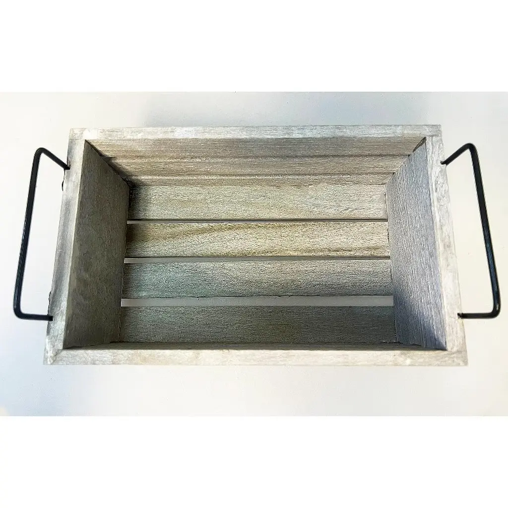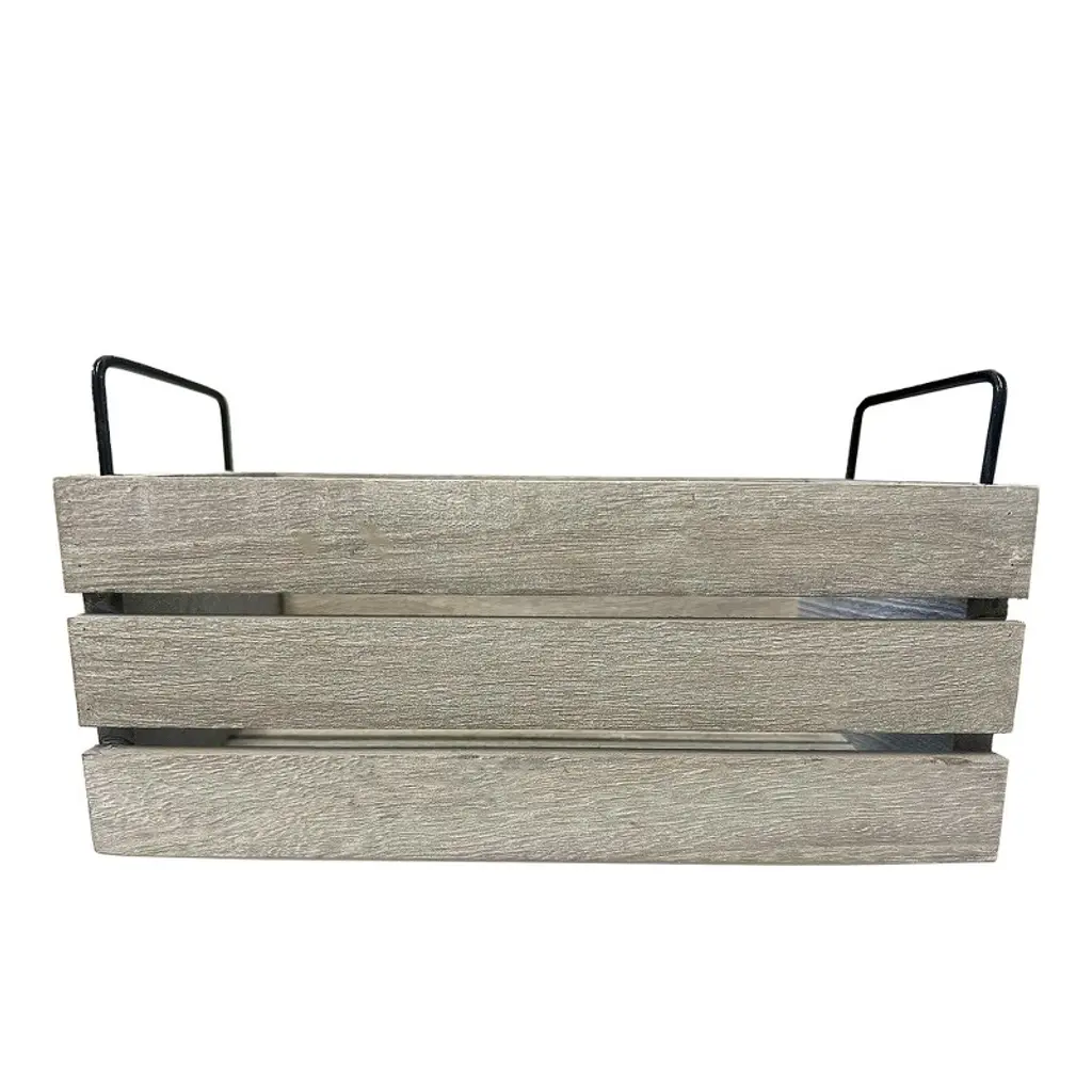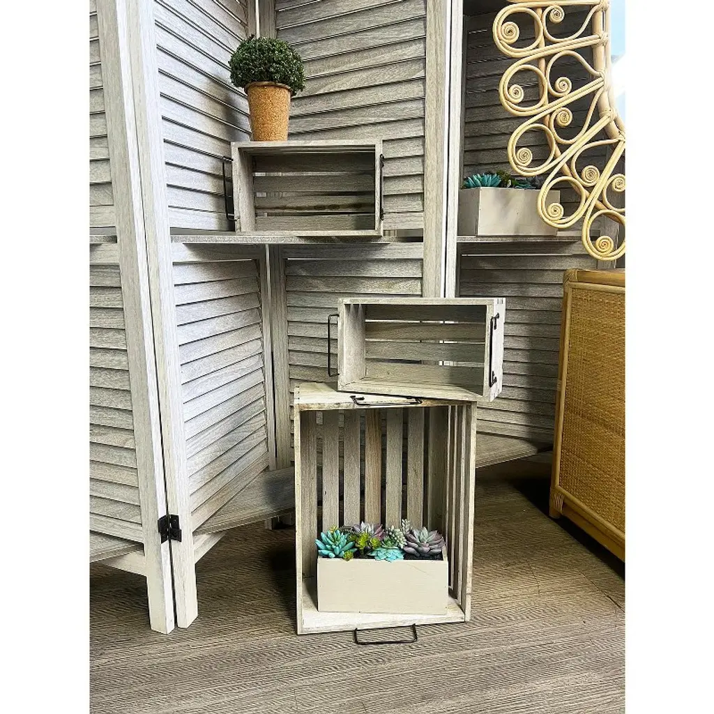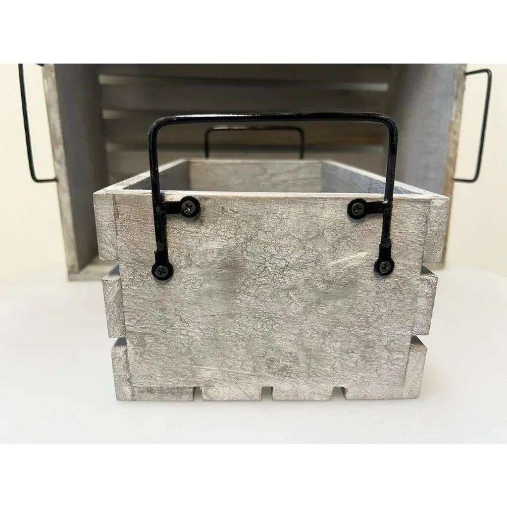 The Essential Decor & Beyond 3-Piece Set Wooden Box with Handle Accent Decor includes three rectangular wooden crates featuring sturdy metal handles, combining rustic charm with an industrial aesthetic. Perfect for both decorative and practical use, these versatile crates offer stylish storage, organization, or display options, adding warmth and character to any interior space.