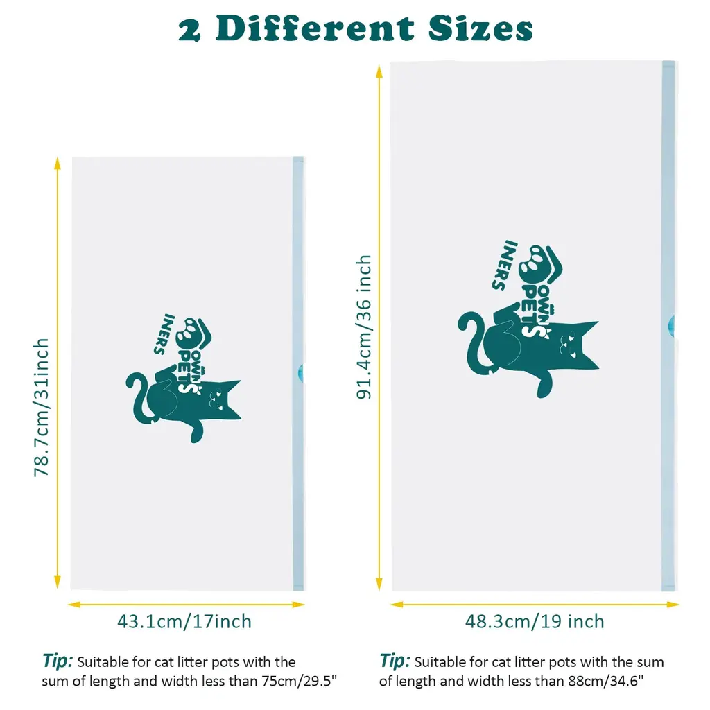 Bullet Points:Extra Large Sizes: We offer two sizes to choose from: 17*31 inches and 19*36 inches. Suitable for most standard litter boxes, each box contains 10 litter drawer liners. Drawstring Closure: Our liners feature sturdy drawstring handles. Just lift the drawstring, and the bag will securely seal, preventing spillage, tearing, or odors. Easy to handle and saves cleaning time, perfect for busy cat owners. Individual Bags: Each box contains bags that are individually sealed, so you don't have to worry about tearing at the seams. Easy to extract. Sturdy and Durable: These bags are made from extra-thick material, resistant to tearing and puncture. With a thickness of 2mil and a load capacity of 33lbs. Safe and Sanitary: Free of any fragrances and deodorizers, safe and sanitary. The litter drawer liners help to avoid any urine and feces sticking to the side or bottom of the litter box, keeping your litter box clean and sanitary. Description: Ownpets Extra Large Durable Litter Box Liners offer unique design and powerful features, greatly facilitating busy cat owners. Our drawer liners are made from extra-thick material to prevent tearing and puncturing, and are designed with drawstring handles for convenience. You can easily seal the bag to prevent spillage and odors. Each bag is individually packaged, so you can easily take out one bag without affecting the others. Our liners contain no added fragrances or deodorants, ensuring safety and sanitation, effectively preventing urine and feces from sticking to the edges and bottom of the litter box. This is an efficient, durable and convenient product that can help you easily maintain the cleanliness of the litter box.Package Included:1 Box x Litter Box Liners