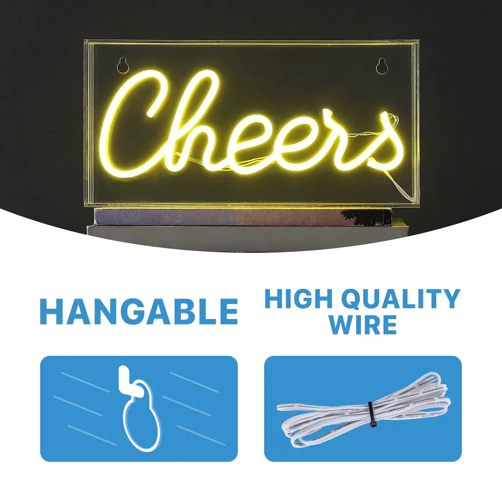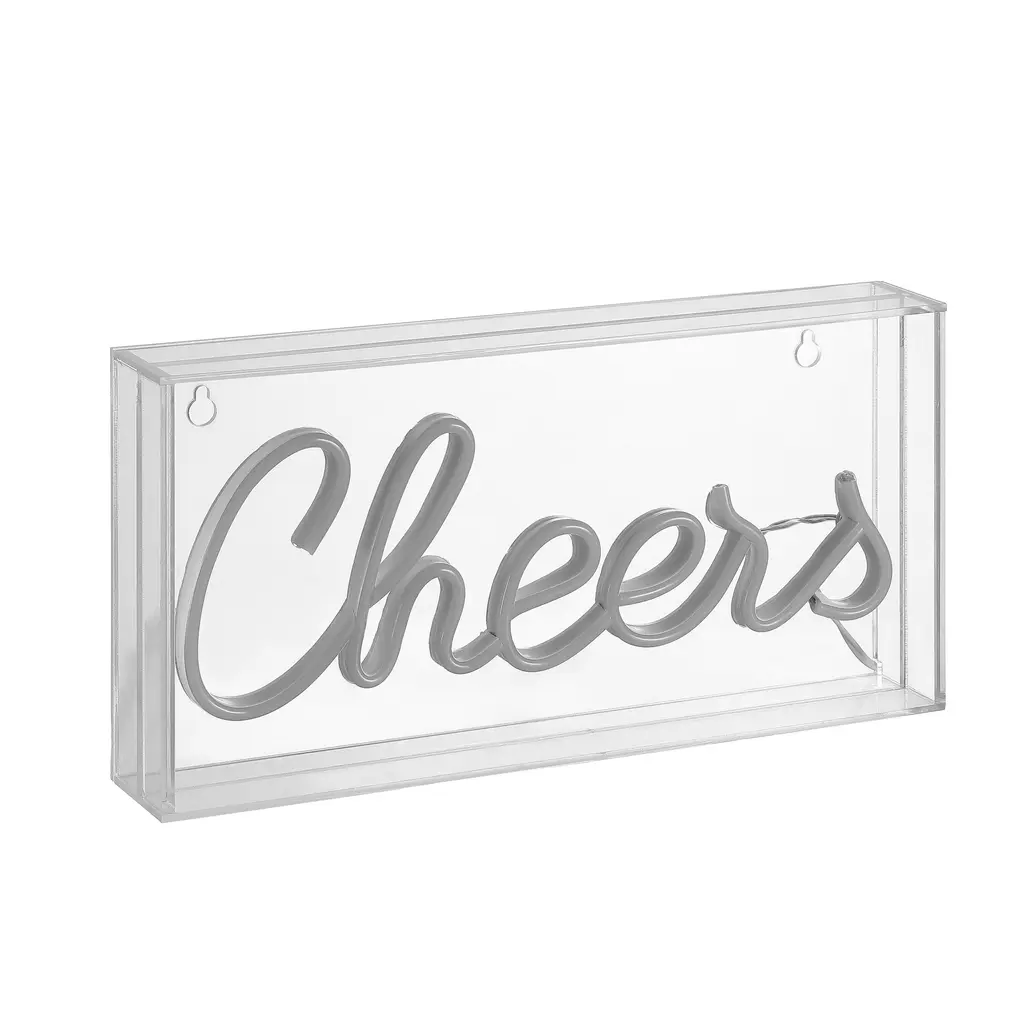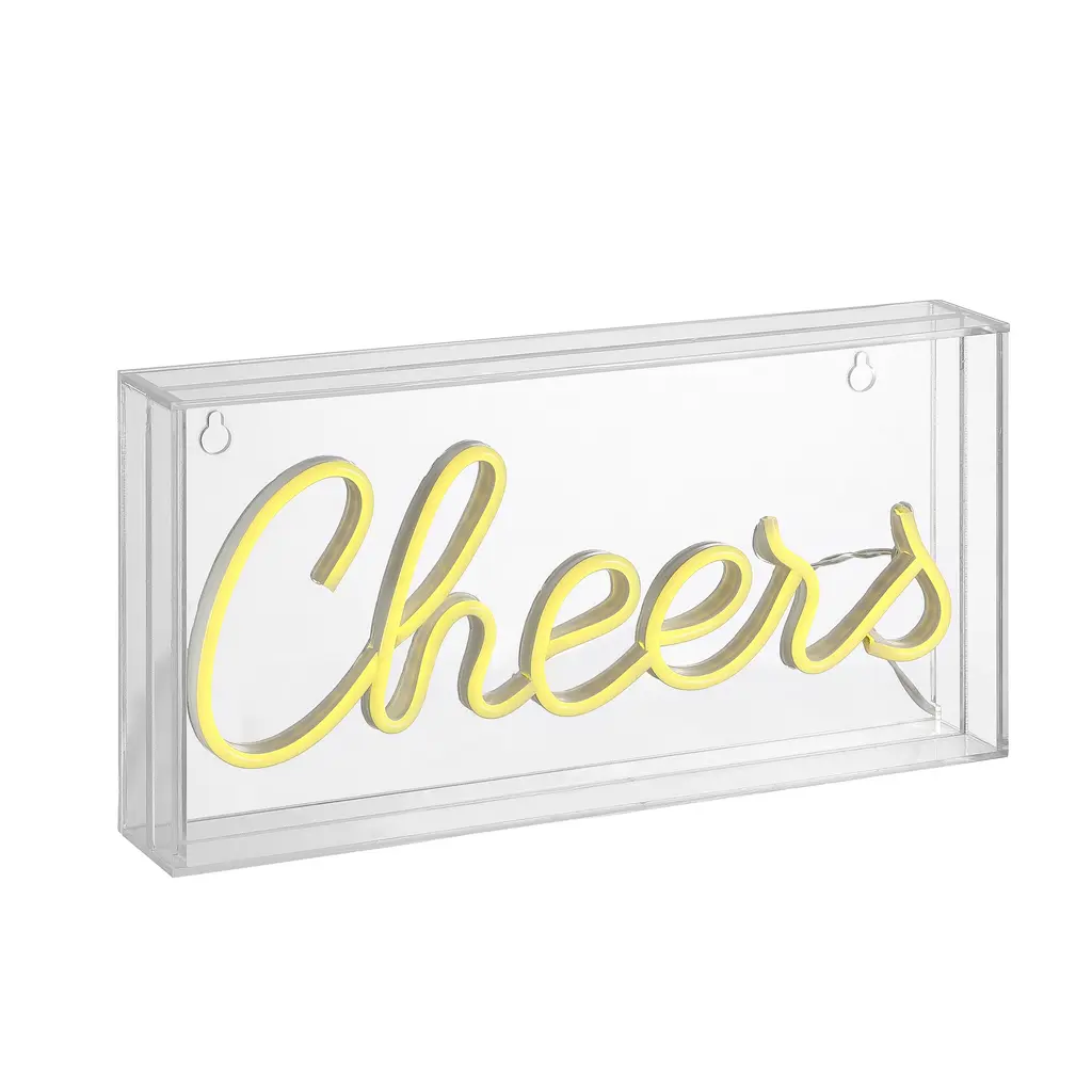 Bright neon makes a whimsical addition to your bookshelf or gallery wall. Hang this Cheers sign above a bar cart, or set it on a kitchen shelf. Makes a great gift for your favorite bartender! Features: Dimensions: About us:You see a lamp.We see a decorative work of art.A perfectly curved shade casts a dramatic shadow on a floor. Compatible with LED lightbulbs: as easy on the environment as they are on the eyes. The JONATHAN Y Lighting collection considers every detail from impeccably sourced materials to designer styling. And our prices are so attractive, we’ve transformed a functional necessity into a fashion accessory.JONATHAN Y Lighting - a fashion revolution in home decor.
