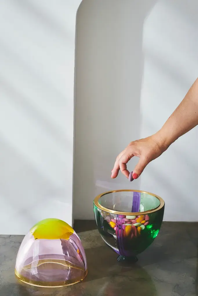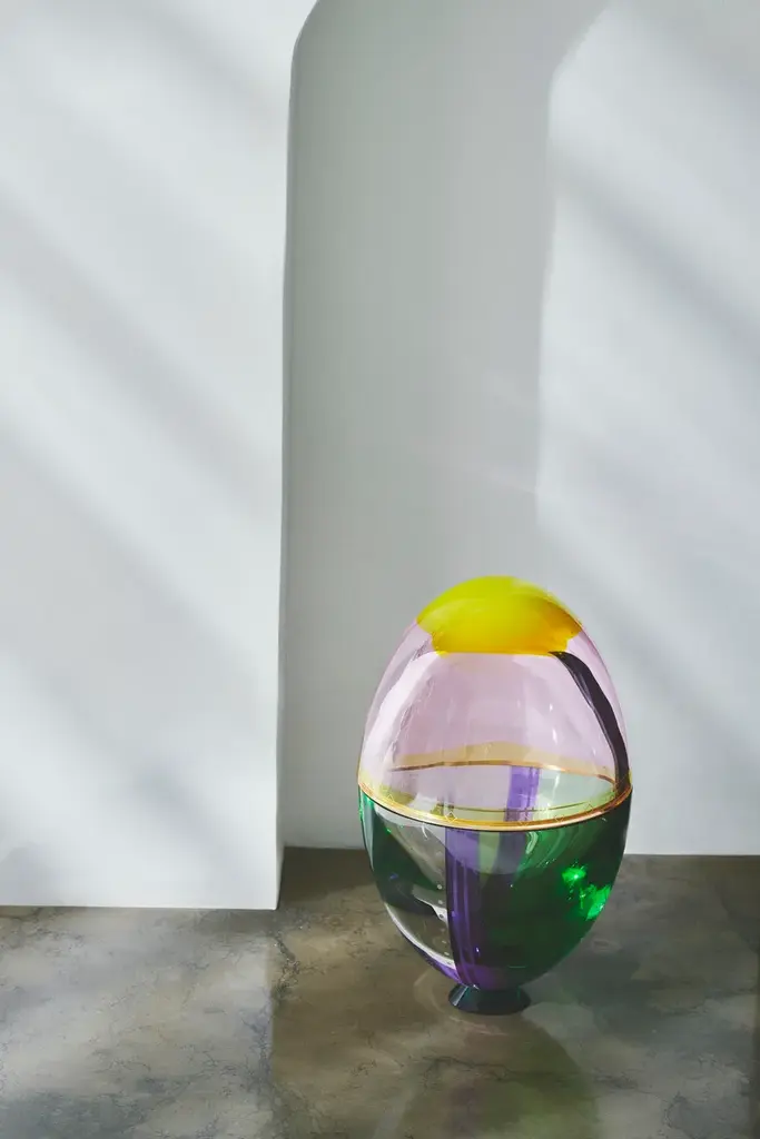 Fantasia Egg Large is a crystal jewelry box. Designed to safeguard your most precious treasures, it features two delicately interlocking pieces that gracefully rise on a crystal base. With an eye-catching design, it combines colors, meticulous finishes, and hand-carved shapes that conceal magical symbolism.Material: Fine hand cut crystalColours: Orange/Rose/Green/Clear/Purple/Brass