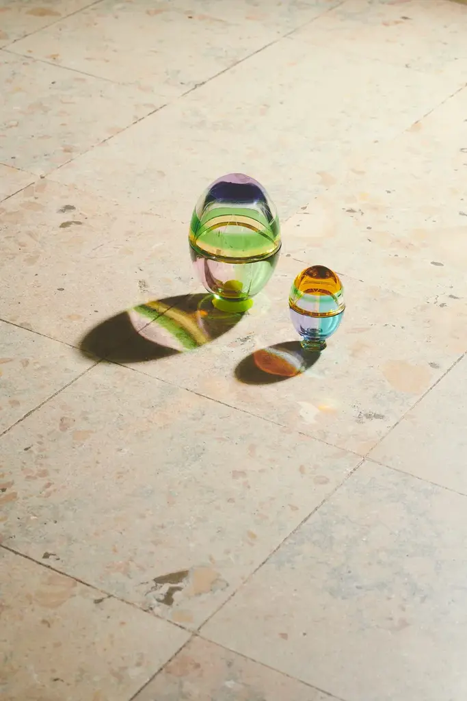 Fantasia Egg Medium is a crystal jewelry box.Designed to safeguard your most precious treasures, it features two delicately interlocking pieces that gracefully rise on a crystal base. With an eye-catching design, it combines colors, meticulous finishes, and hand-carved shapes that conceal magical symbolism.Material: Fine hand cut crystalColours: Blue/Clear/Green/Rose/Brass