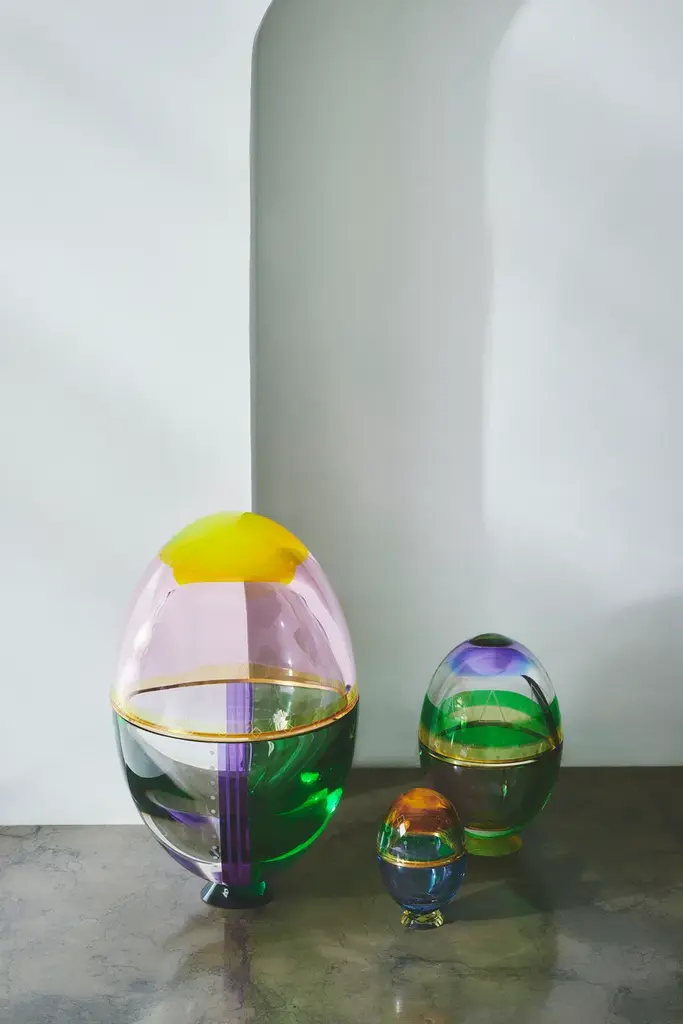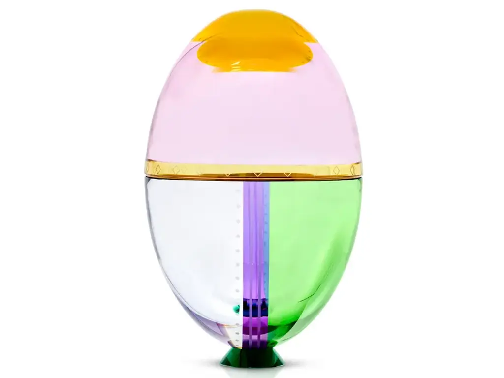 Fantasia Egg Small is a crystal jewelry box. Designed to safeguard your most precious treasures, it features two delicately interlocking pieces that gracefully rise on a crystal base. With an eye-catching design, it combines colors, meticulous finishes, and hand-carved shapes that conceal magical symbolism.Material: Fine hand cut crystalColours: Orange/Clear/Purple/Azure/Brass