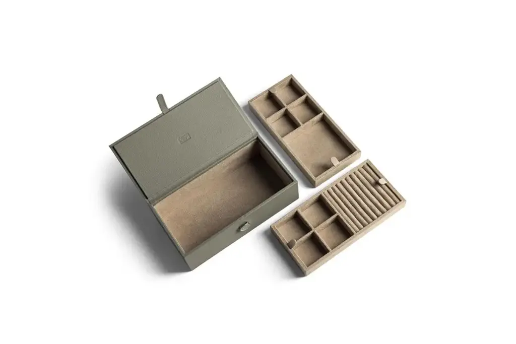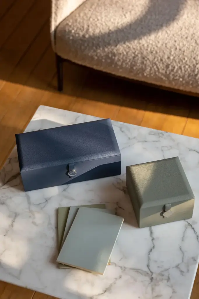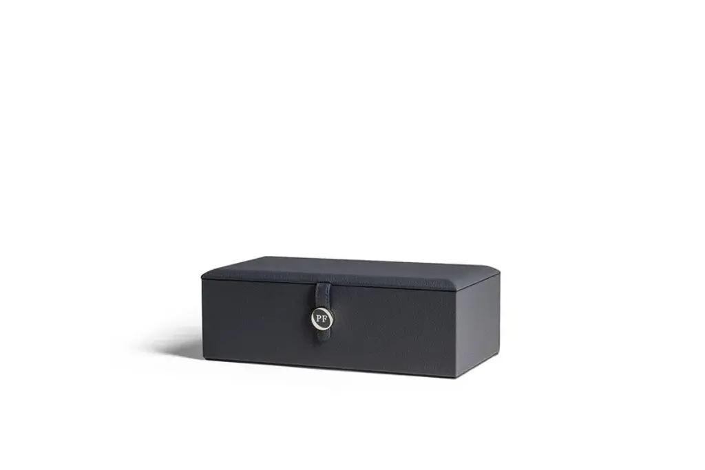 Fascination is the set of accessories upholstered in leather with an effortless and stylish aesthetic. The result of Poltrona Frau Style & Design Centre's creative vision, the Fascination decorative elements are designed as caskets that gracefully hold small personal items. Fascination objects tastefully complement any home décor thanks to their innate finesse. Fascination is the set of accessories upholstered in leather with an effortless and stylish aesthetic. The result of Poltrona Frau Style & Design Centre's creative vision, the Fascination decorative elements are designed as caskets that gracefully hold small personal items. Fascination objects tastefully complement any home décor thanks to their innate finesse.FFascination is the jewelry and watch case set with Pelle Frau® leather upholstery, available in square and rectangular options. The inside features a soft microfiber lining for protection. Removable trays allow different interior configurations to be defined. The lid is embellished with a diamond shape and features a leather strap that slips through a metal loop and serves as a clasp. Fascination is the jewelry and watch case set with Pelle Frau® leather upholstery, available in square and rectangular options. The inside features a soft microfiber lining for protection. Removable trays allow different interior configurations to be defined. The lid is embellished with a diamond shape and features a leather strap that slips through a metal loop and serves as a clasp.