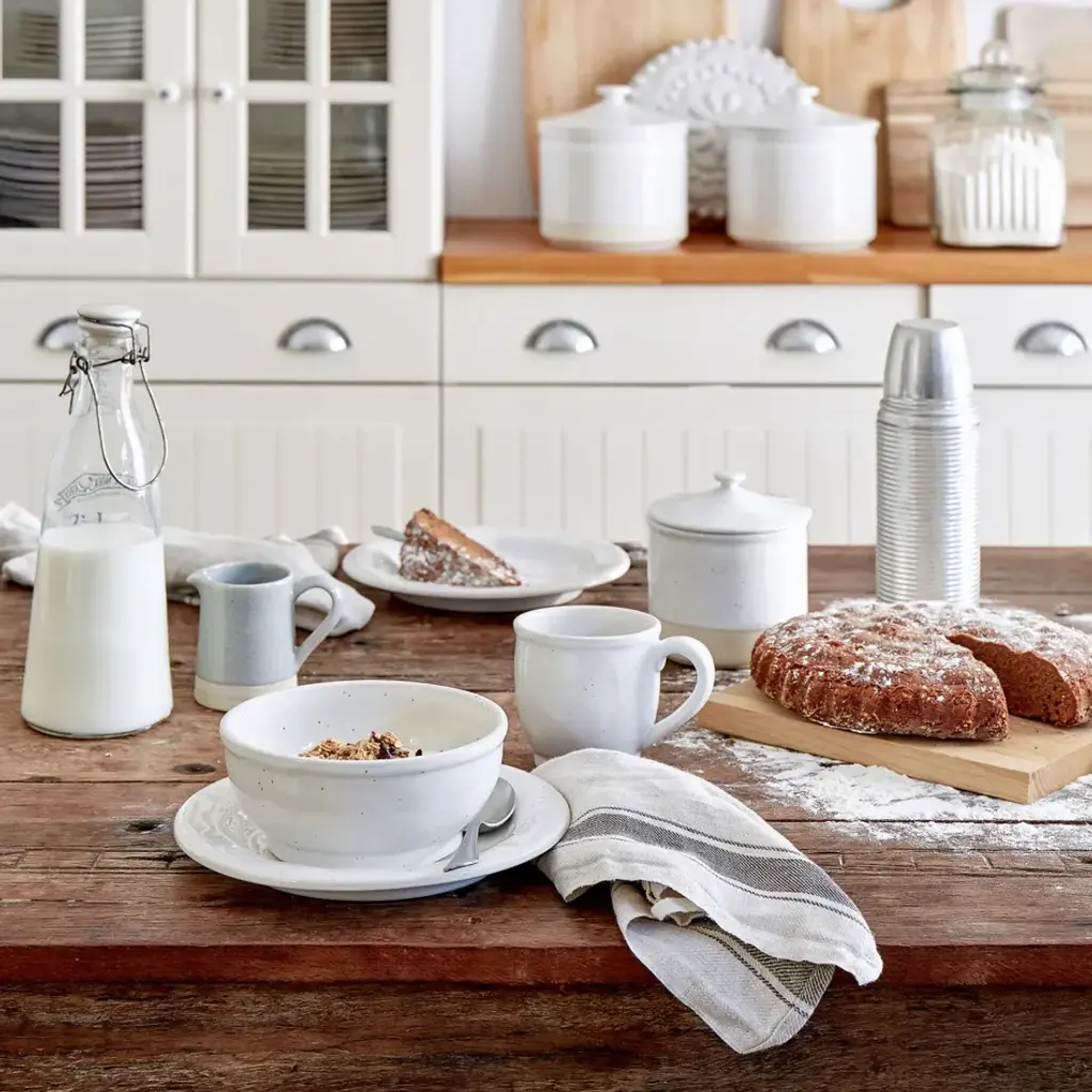 The quintessential farmhouse look is the foundation of the Fattoria collection. A variety of cooking and serveware pieces like bakers, mixing bowls, 3-size canisters, and generous pitchers… transport lovers of a traditional Italian kitchen look to a more contemporary approach without losing its inherent country charm. All Fattoria items are available in white, while a subset of pieces can be purchased in a pale grey.