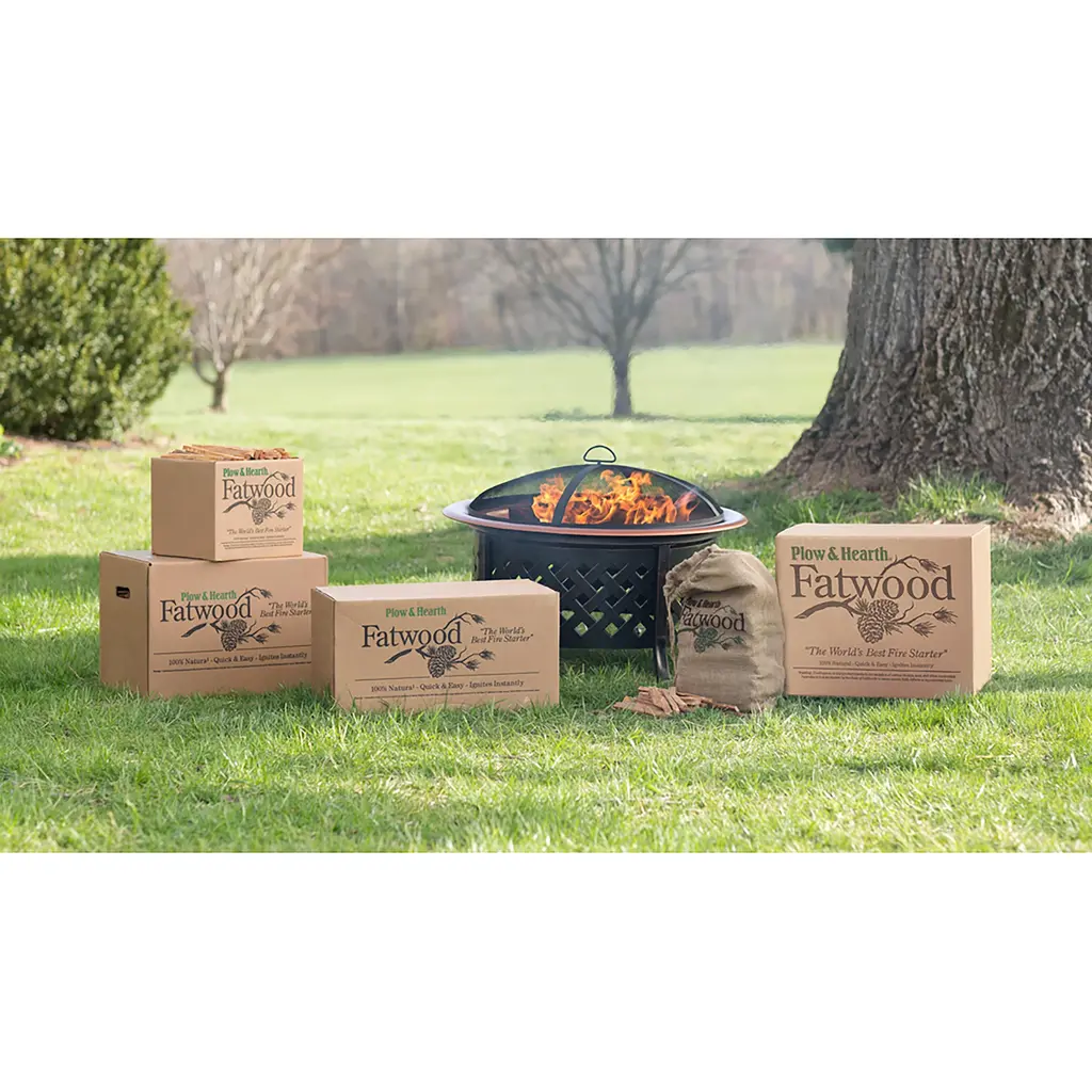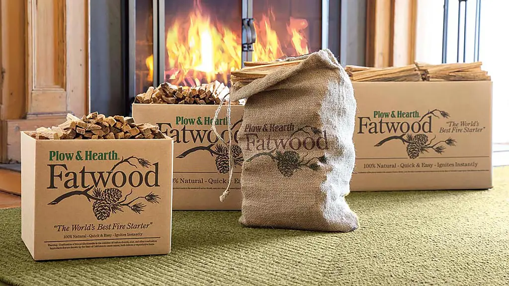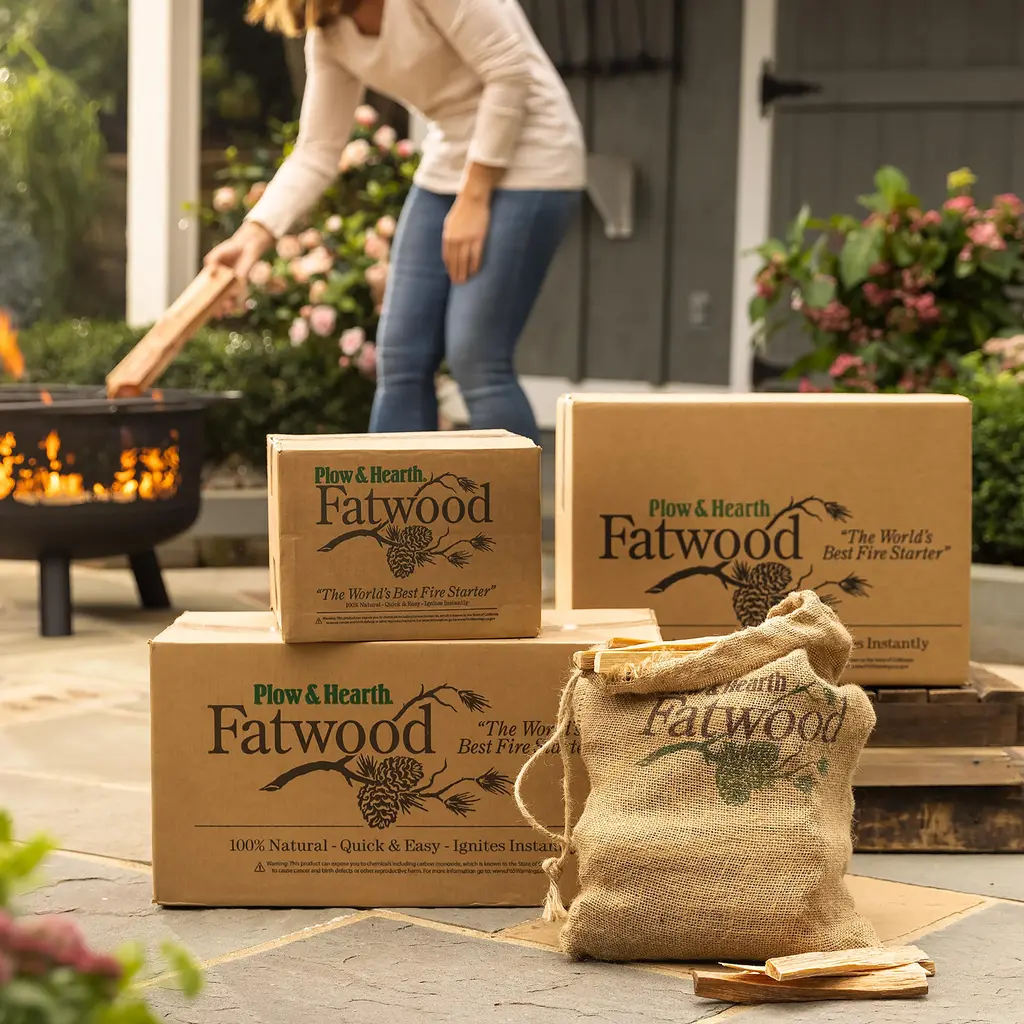Fatwood is nature's best kindling! Loaded with organic resins that ignite instantly, our Fatwood Fire-Starter burns with an intense heat and gets fires going quickly! Just two 8"L sticks and a single match is all it takes.Every 8"L stick of our resin-rich Fatwood is hand-selected and harvested from naturally felled trees (storms, lightning, old age). Our Fatwood is not the by-product of commercial logging or clear-cutting. Not a single live tree is used. Plow & Hearth Fatwood is the all-natural, environmentally friendly fire starter.Fatwood fire-starting sticks have an indefinite shelf life – Fatwood even ignites when wet! Ideal for wood stoves, fireplaces, campfires, chimeneas, fire pits and more. Makes a great gift any time of year. Don't run out – buy in bulk and save, too!