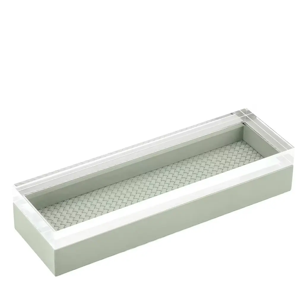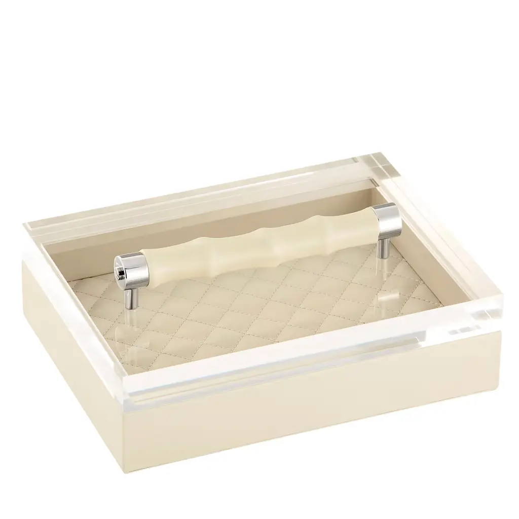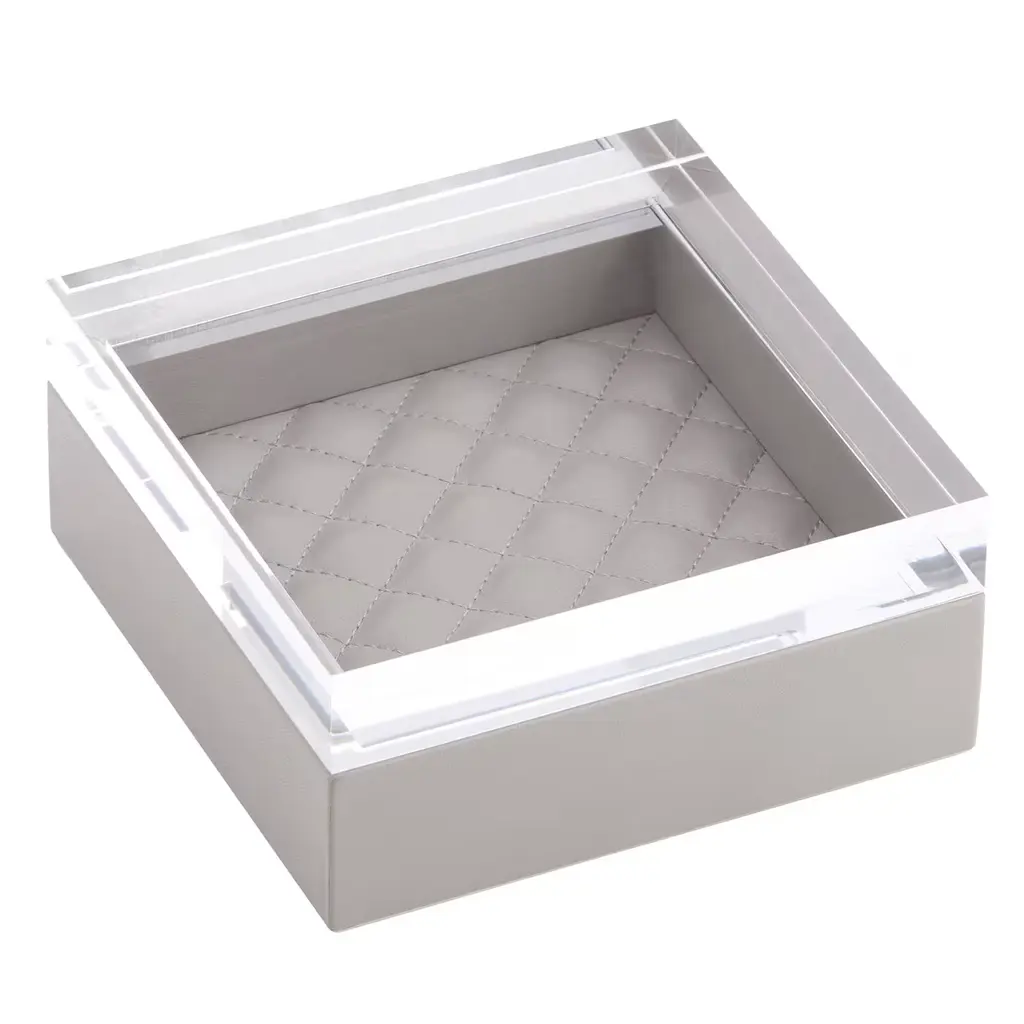 This elegant and versatile leather-covered box, part of the Febe Collection, is a testament to fine craftsmanship and timeless elegance. It boasts an acrylic lid and quilted diamonds padded lining.