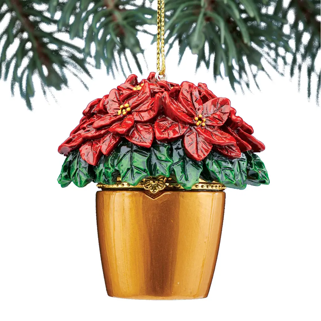 These detailed trinket boxes are the perfect way to give a gift to someone you love. The hand-painted ornaments make a festive addition to your tree. Choose: Ornament, Nutcracker, Poinsettia or Red Truck. Each has a ribbon for easy hanging and a clasp for opening. Resin and brass. Each approx. 2 1/2"Dia. 3"H.