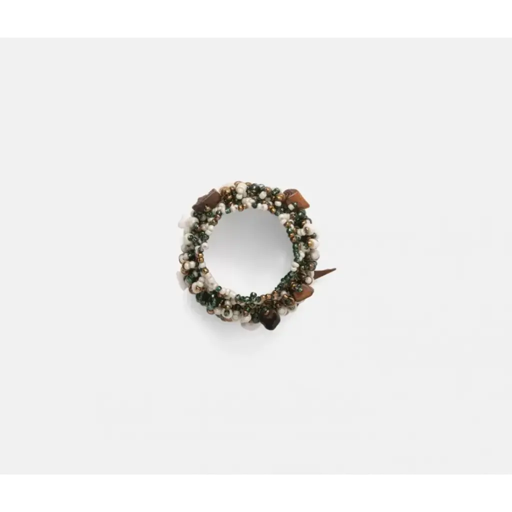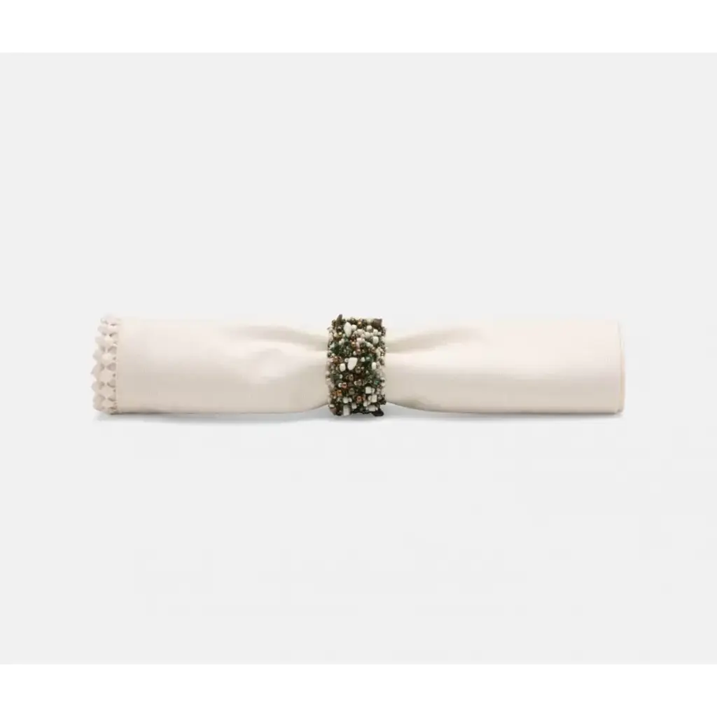 A sunburst shape of mixed glass beads, the Fianna is flexible enough to fit any napkin size. Blue Pheasant's products are handmade with care by artisans using natural materials. They are not mass produced, so variation between products should be expected, and this is why we love them! It is these irregularities that makes Blue Pheasant what it is—a special brand whose collections are distinctly handmade, full of charm and originality you’ll never find in machine-made products.