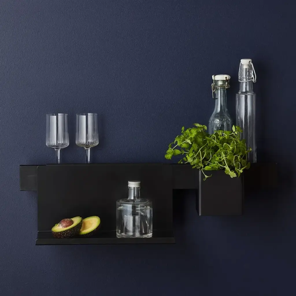 FLEX LARGE BOX BLACK - lacquered metal boxes for Gejst's FLEX modular system.Flex is a multifunctional storage shelf, just the right size and with all the elements you need for keeping your bits and pieces tidy in all sorts of settings. Stylishly functional in the best tradition of Nordic design, Flex is made with a focus on high quality materials and combines a magnetic strip, shelf, hooks and boxes. Effortlessly interchangeable, you choose the set up that works for you.Flex uses a powerful magnet that allows the different elements to be placed just where you want them without wobbling. Boxes and hooks can easily be rearranged, dismounted and put back into place. Take the box with you and put it back when you’re done. Surfaces, tables and worktops can be kept clear with your items neatly organized but always kept easily within reach just where you need them.