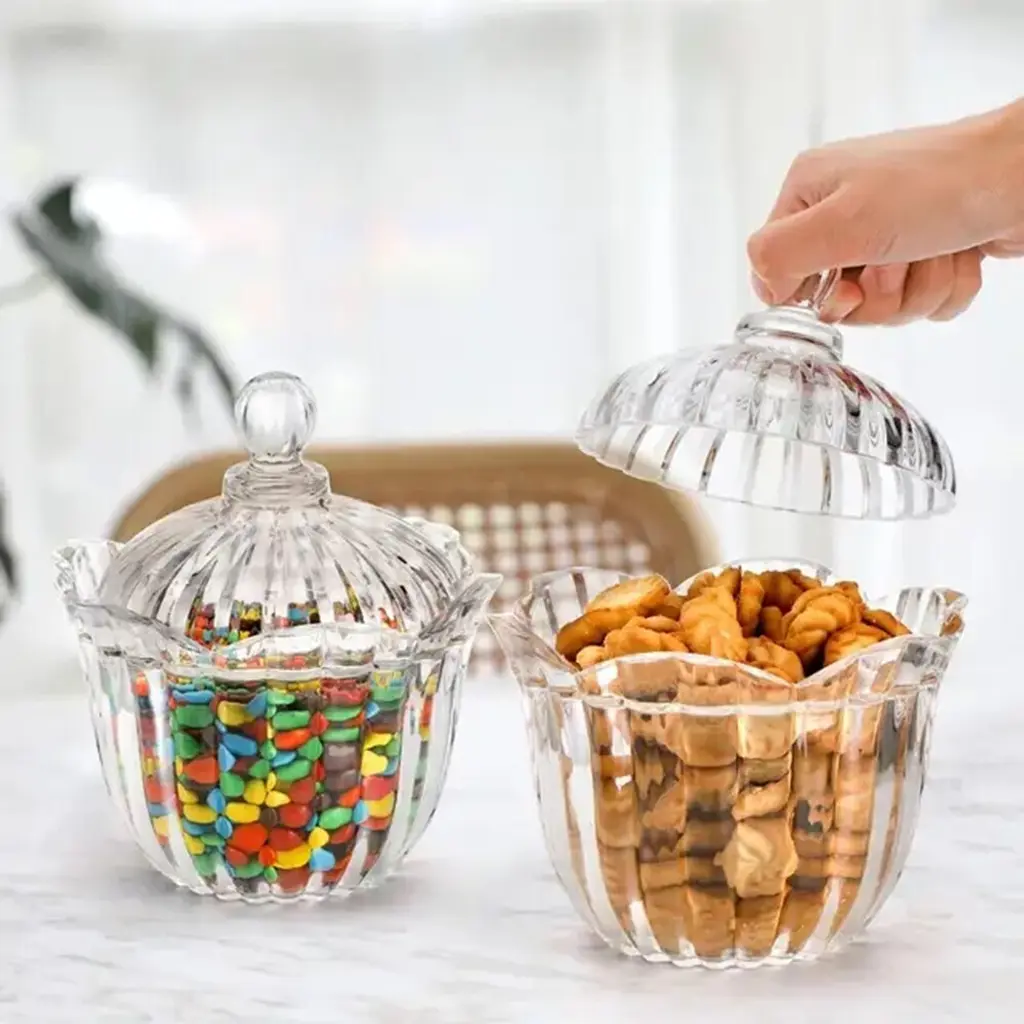 Decorative glass candy tray for candy buffet, made of high-quality lead-free transparent glass, with solid decoration. Very suitable for any activity for daily use. Decorate any space in your home or business. Fill them with candy, biscuits or pretzels at home or at special events, and your guests will like them. Healthy storage jar: Made of high quality glass. Health and non-toxic, creating an airtight environment to keep contents dry, keep ingredients fresh and safe. Classic design with faceted cuts makes candy jar sparkle and shine elegantly. It will look too good to resist. Treat your family and guests a bowlful of fun with sparkling candy dish, bringing festive events to life. Glass sugar bowl of size: 15.5cm /6.1in(D) x 18cm /7.1in(H). Capacity: 250ml Multi-purpose jar:the convenient size of the candy jar allows you to use it for candies, chocolate, cookies, coffee sugar, nuts, trinkets and even jewels, adding a splash of adorable charm to any tabletop decor. Table decorations :Makes a great hostess gift. The glamorous crystal candy jar will complement on any home decor. It's a perfect housewarming/ Valentine's Day gift and Christmas gift for yourself or for your darling wife, family, friends, colleagues, classmate. Ideal as a housewarming or wedding gift, or as decorative accents for weddings and other events. This combination will match any decor.