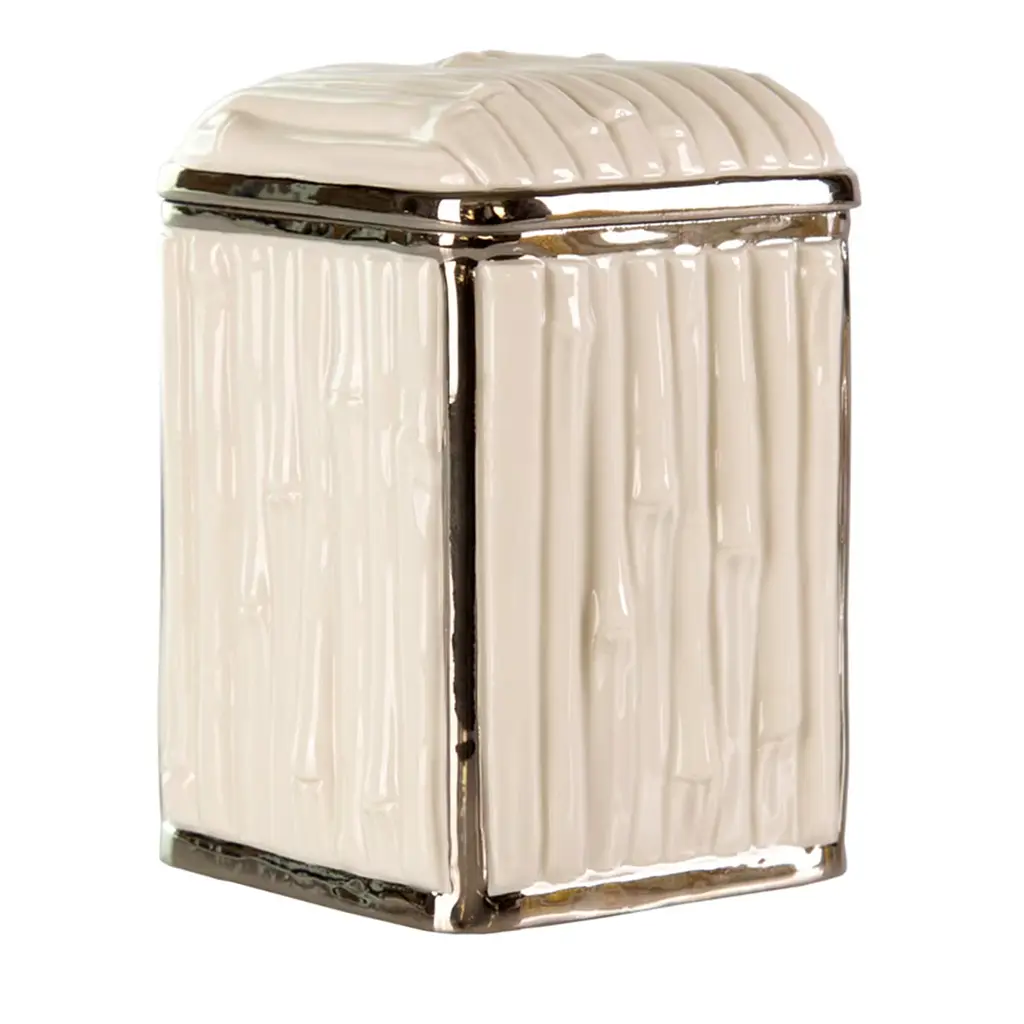 Fluted edges give texture and detail to the simple, clean Fluted Lidded Bathroom Canister. Crafted from ceramic in a smooth white finish, this canister is topped with a straightforward lid designed with a subtle knob handle. Bringing organization and delicate detail to the bathroom, the Fluted Lidded Bathroom Canister is an essential bathroom accessory.