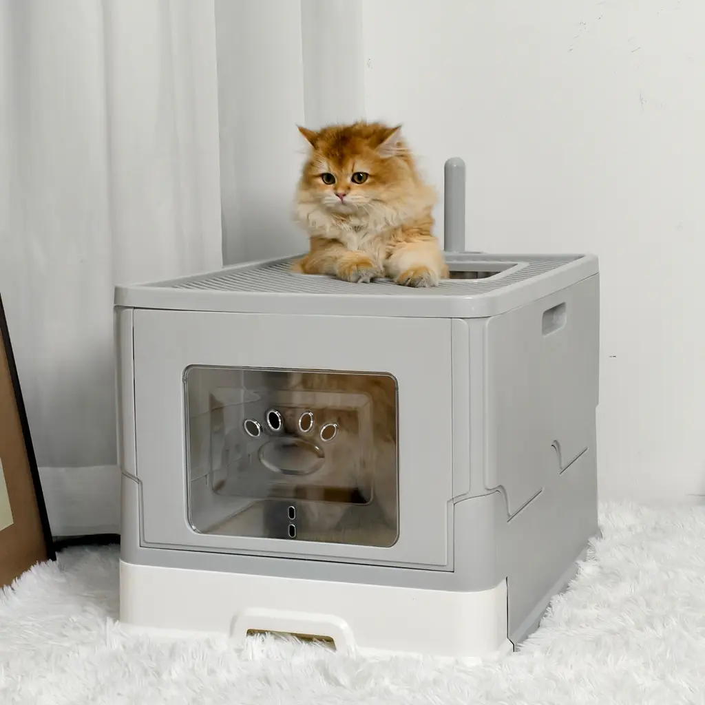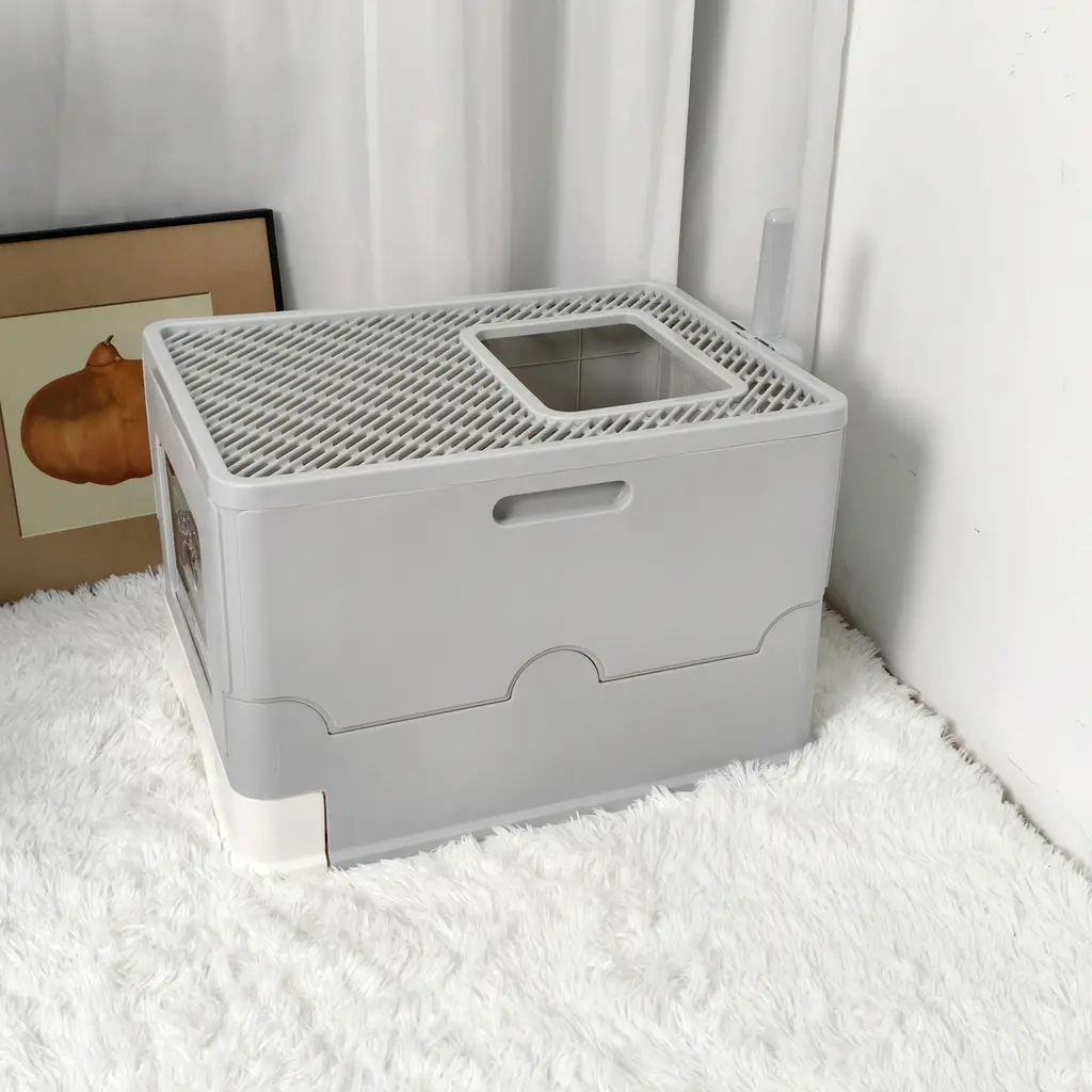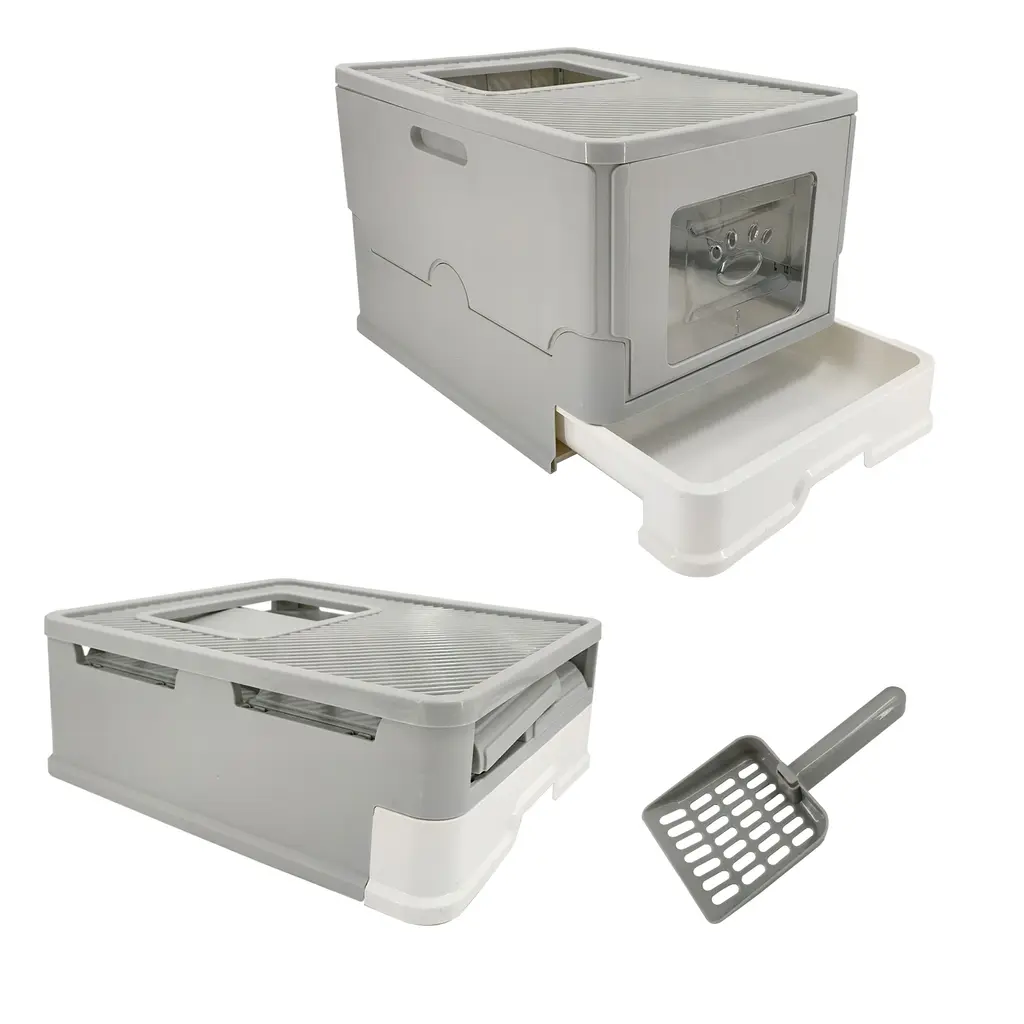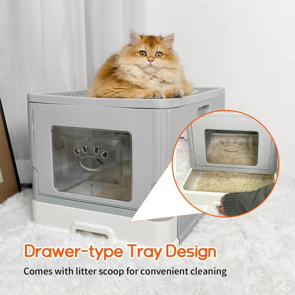 Foldable Cat Litter Box With Lid Large Cat Toilet Enclosed Drawer Type - Grey