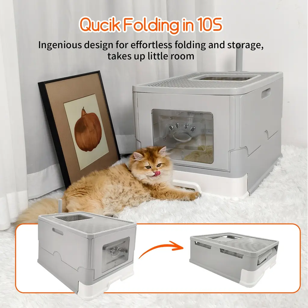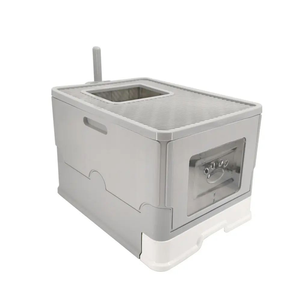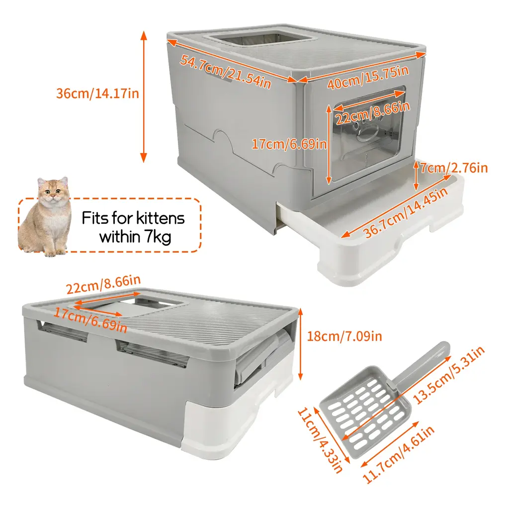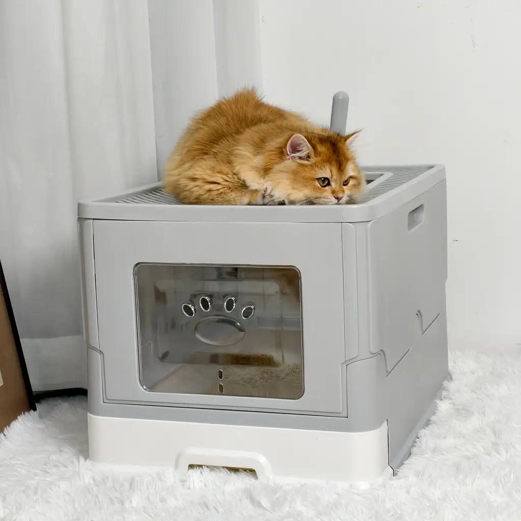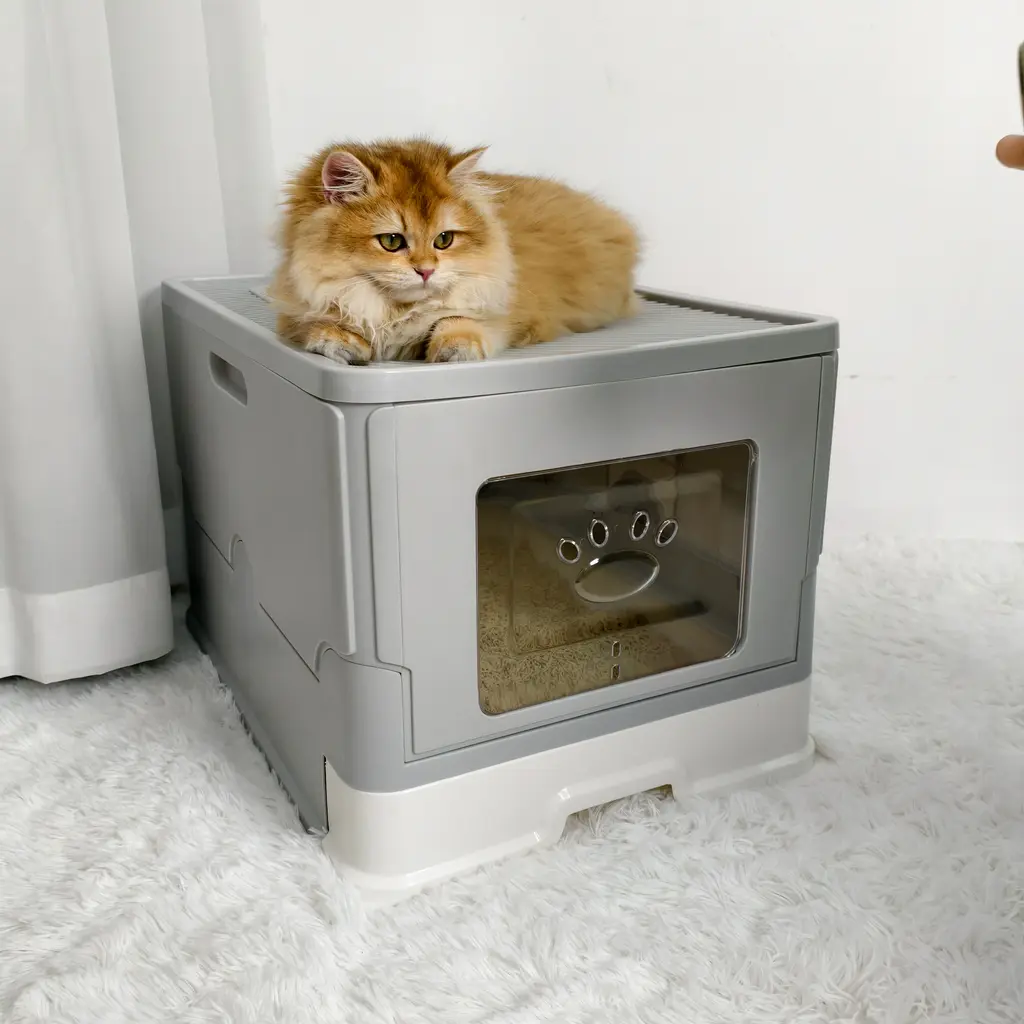 Foldable Cat Litter Box With Lid Large Cat Toilet Enclosed Drawer Type - Grey