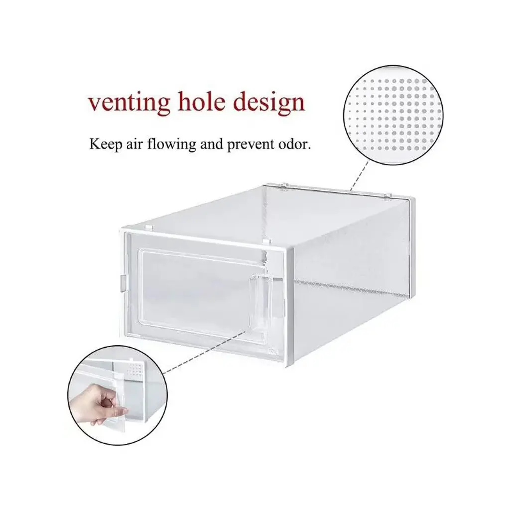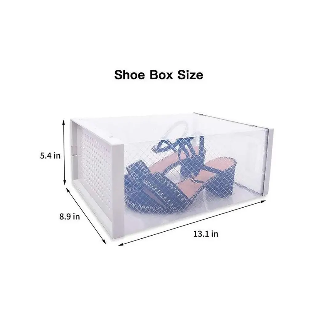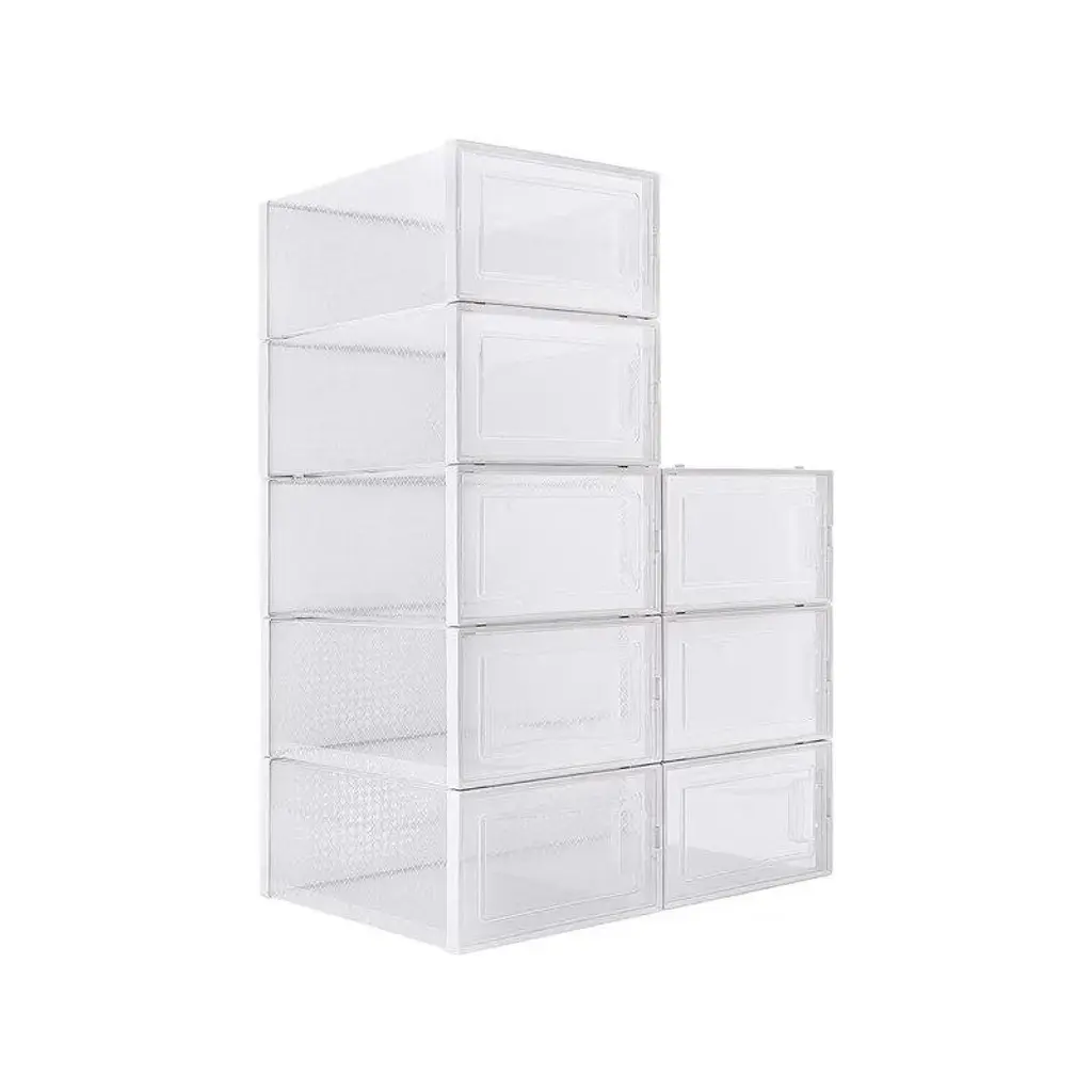 Foldable Shoe Box; Stackable Clear Shoe Storage Box - Storage Bins Shoe Container Organizer; 8 Pack; White