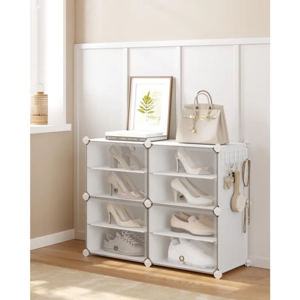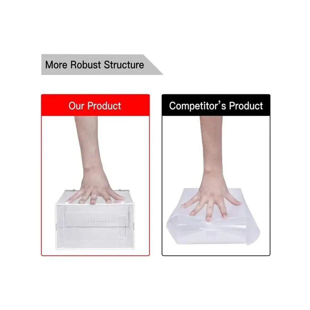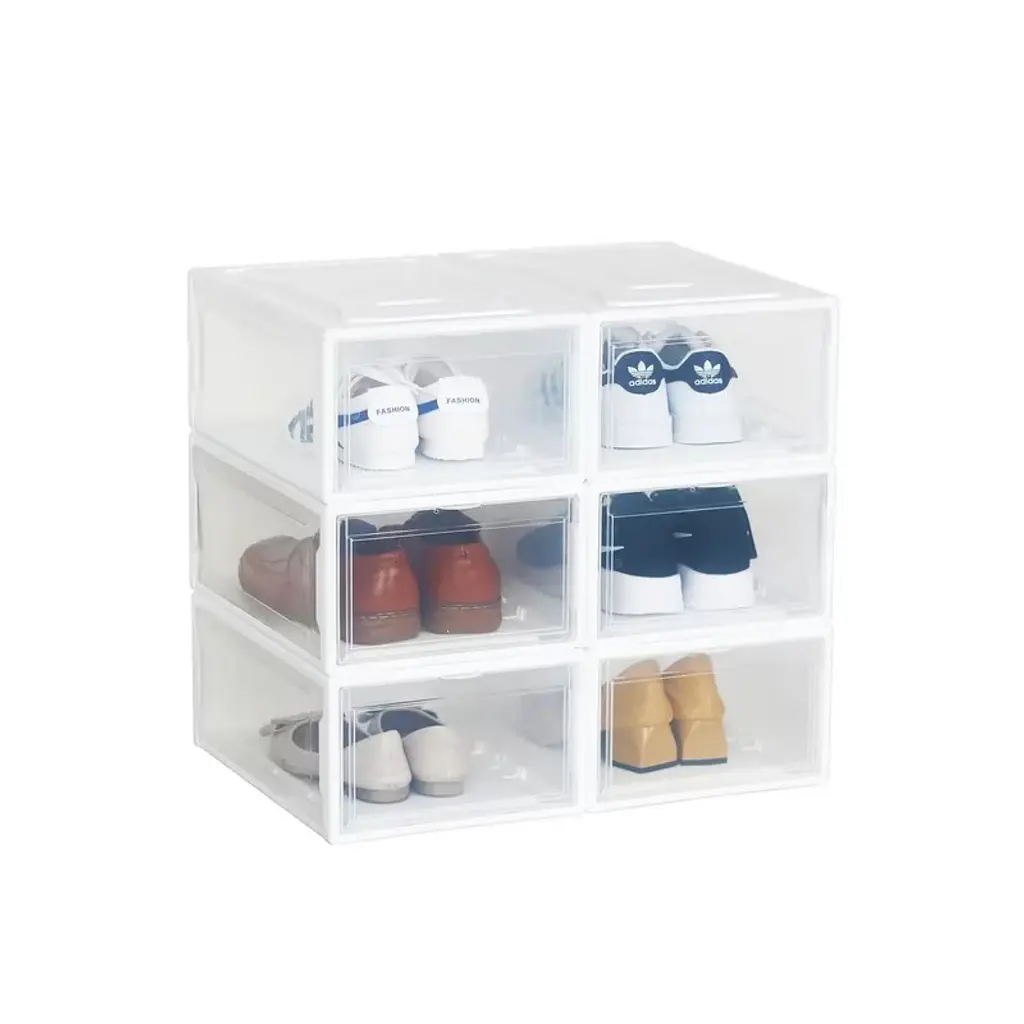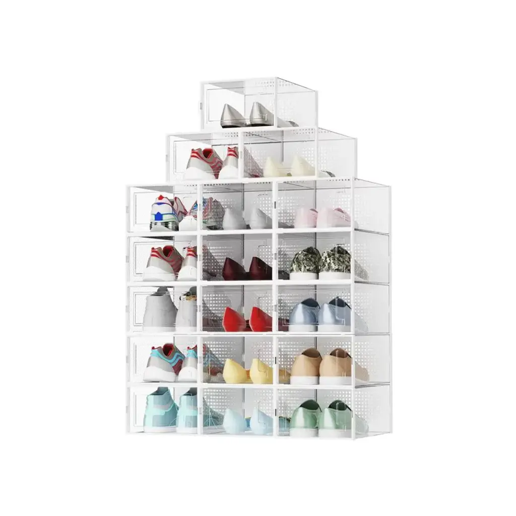 Foldable Shoe Box; Stackable Clear Shoe Storage Box - Storage Bins Shoe Container Organizer; 8 Pack; White