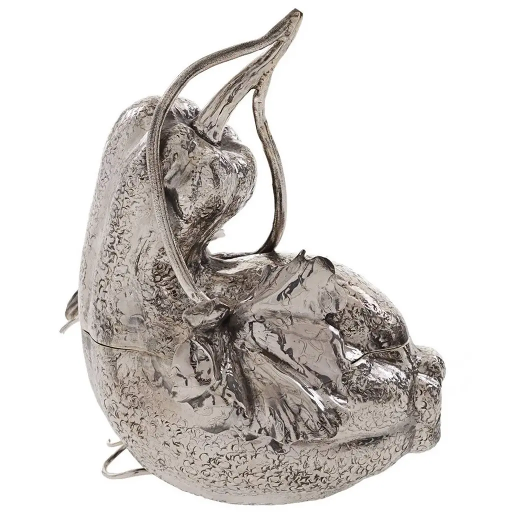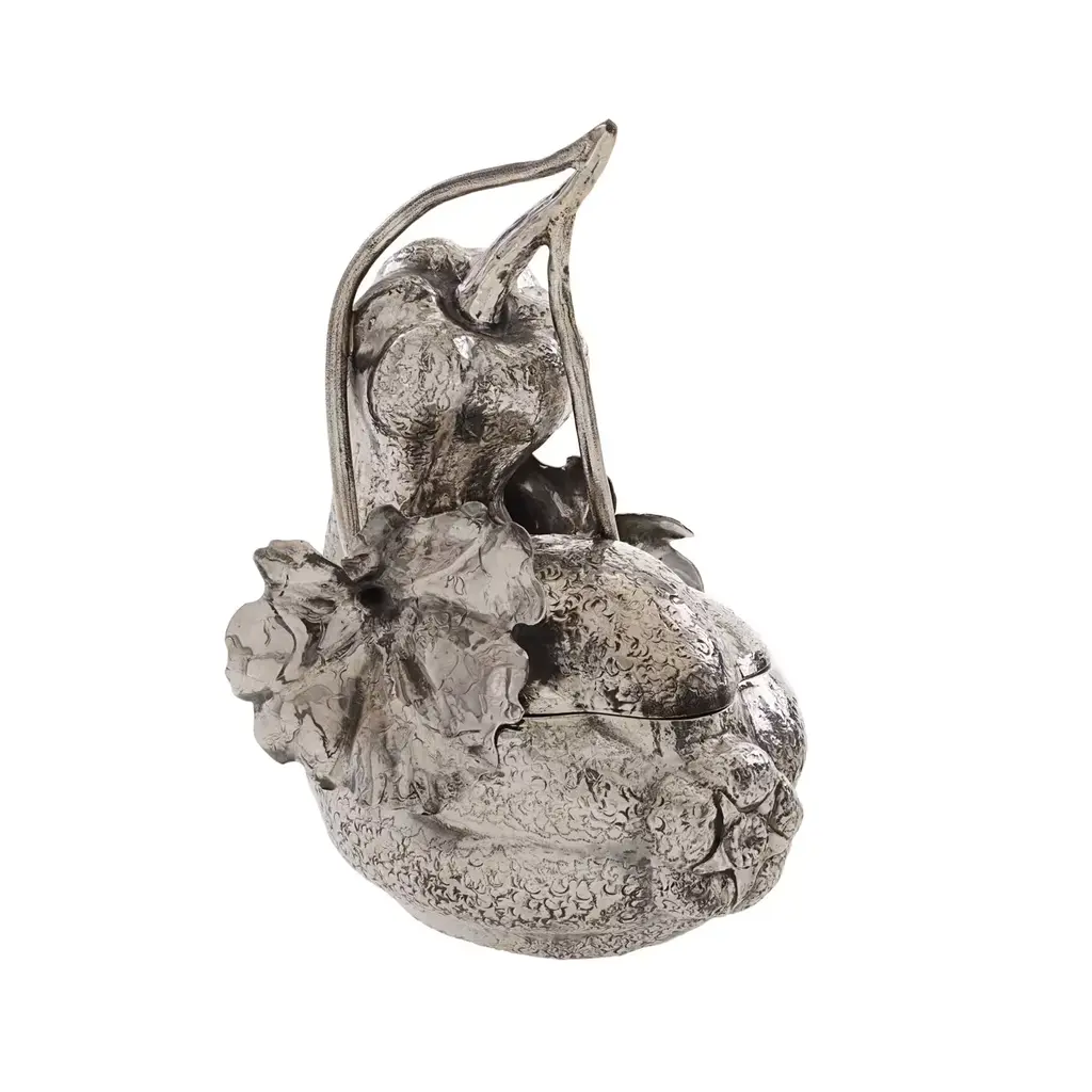 Sterling silver pumpkin-box handcrafted, chiseled and embossed by expert silversmiths, the Lisi brothers, in Florence. Its dynamic and hyper-realistic quality make it a precious decor piece. The interior has a removable lining for easy and flawless maintenance.