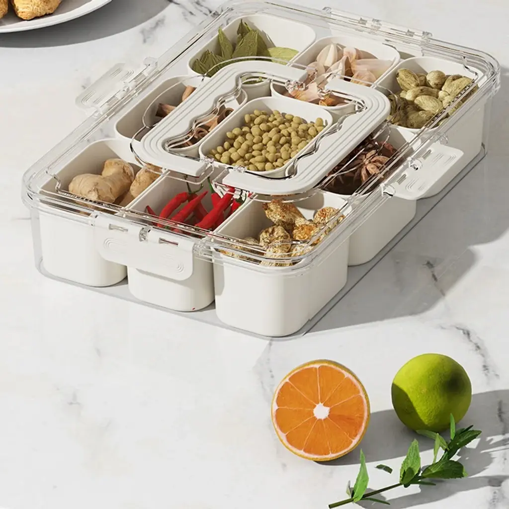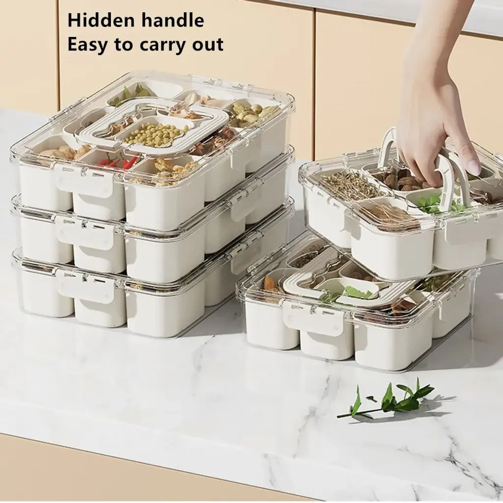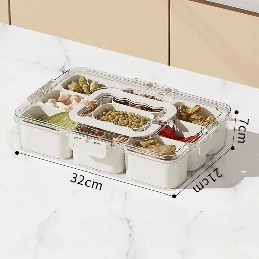 Our Divided Serving Tray with Lid and Handle is perfect for outdoor gatherings with its large capacity and sealed lid to keep food fresh. Neatly store fruits and vegetables with its multiple compartments. Please note it is not safe for dishwasher or microwave use.