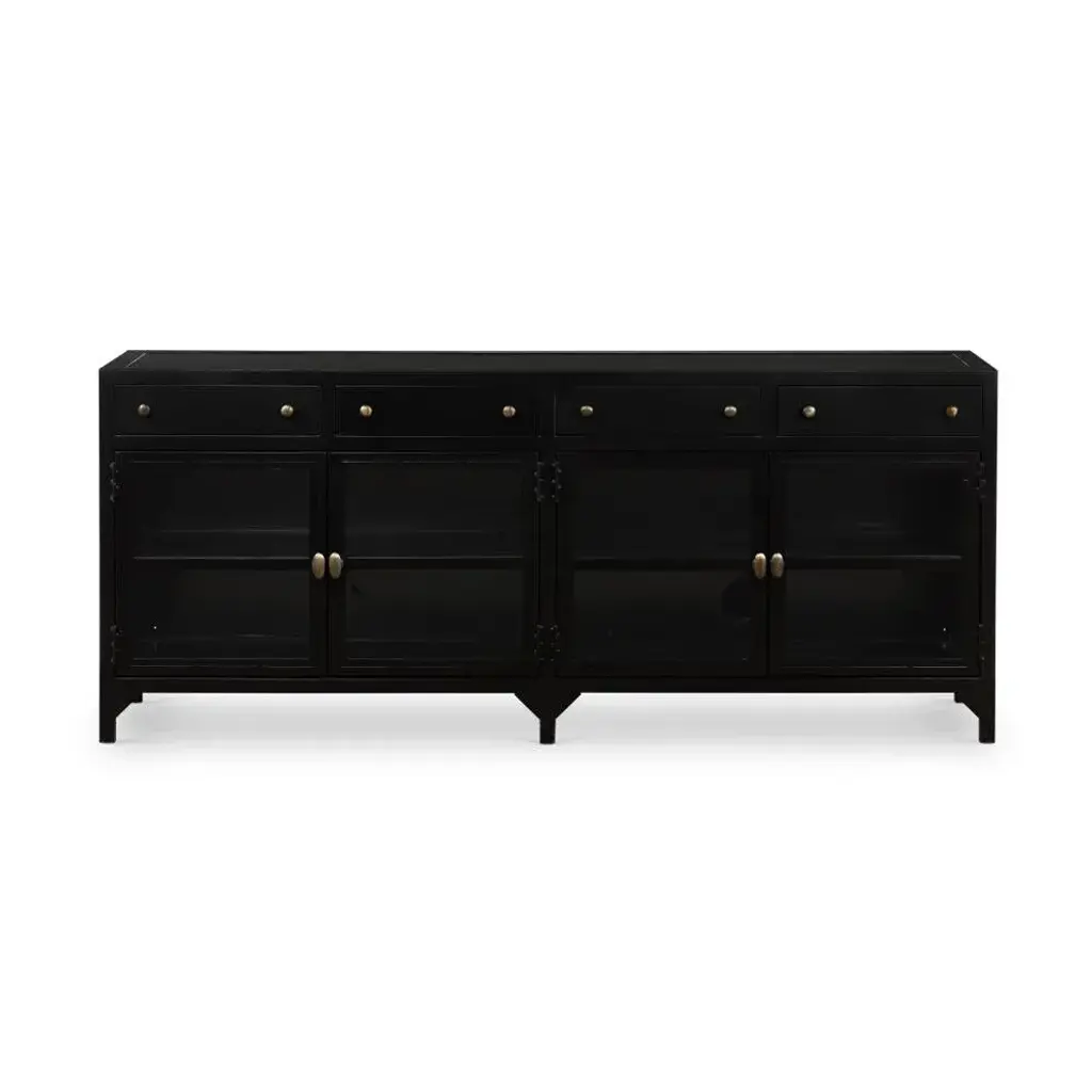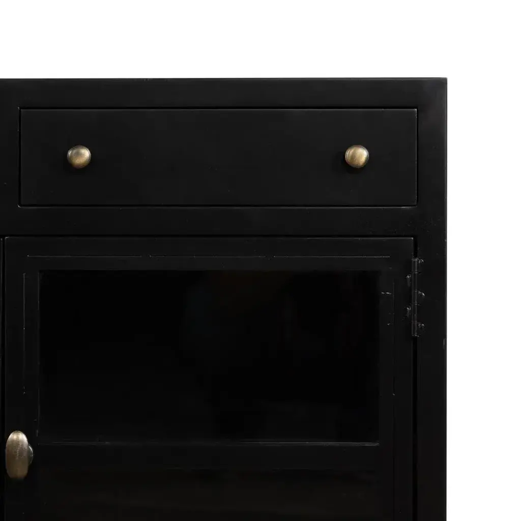 A shadowbox-inspired console table gives your inner collector a place to play. Frame prized posessions in a glass enclosure with matte-black metal and brass knobs. Assembly Required? No