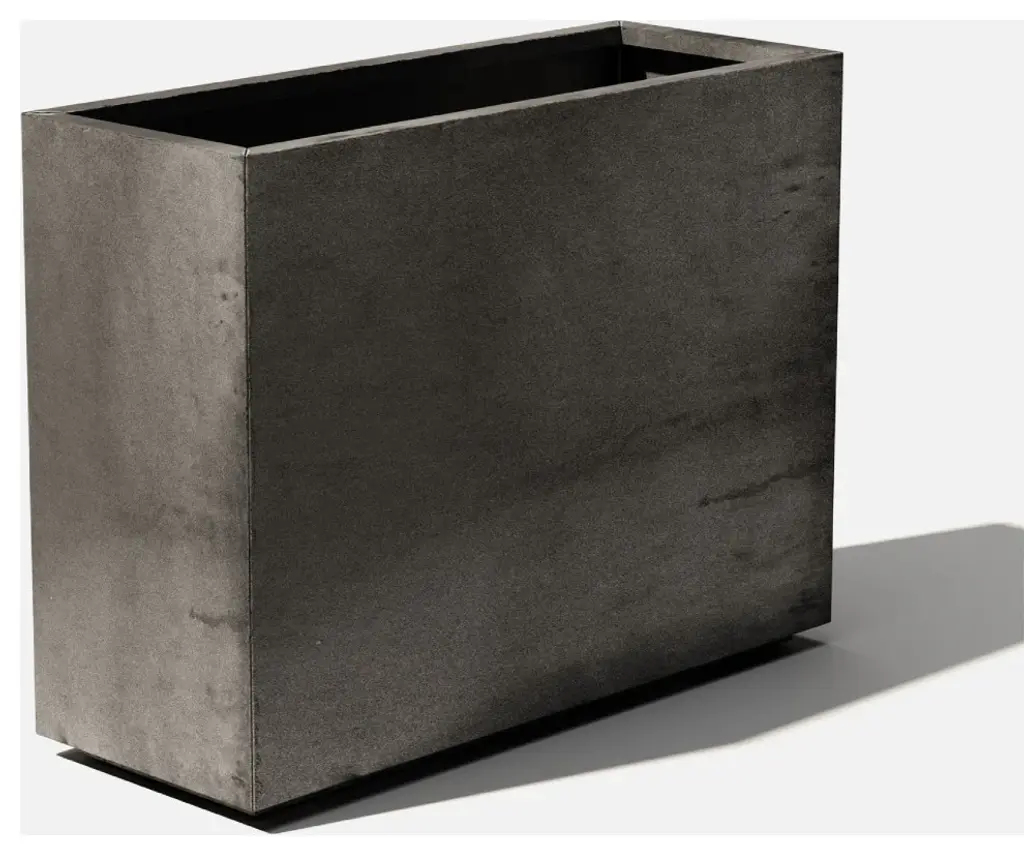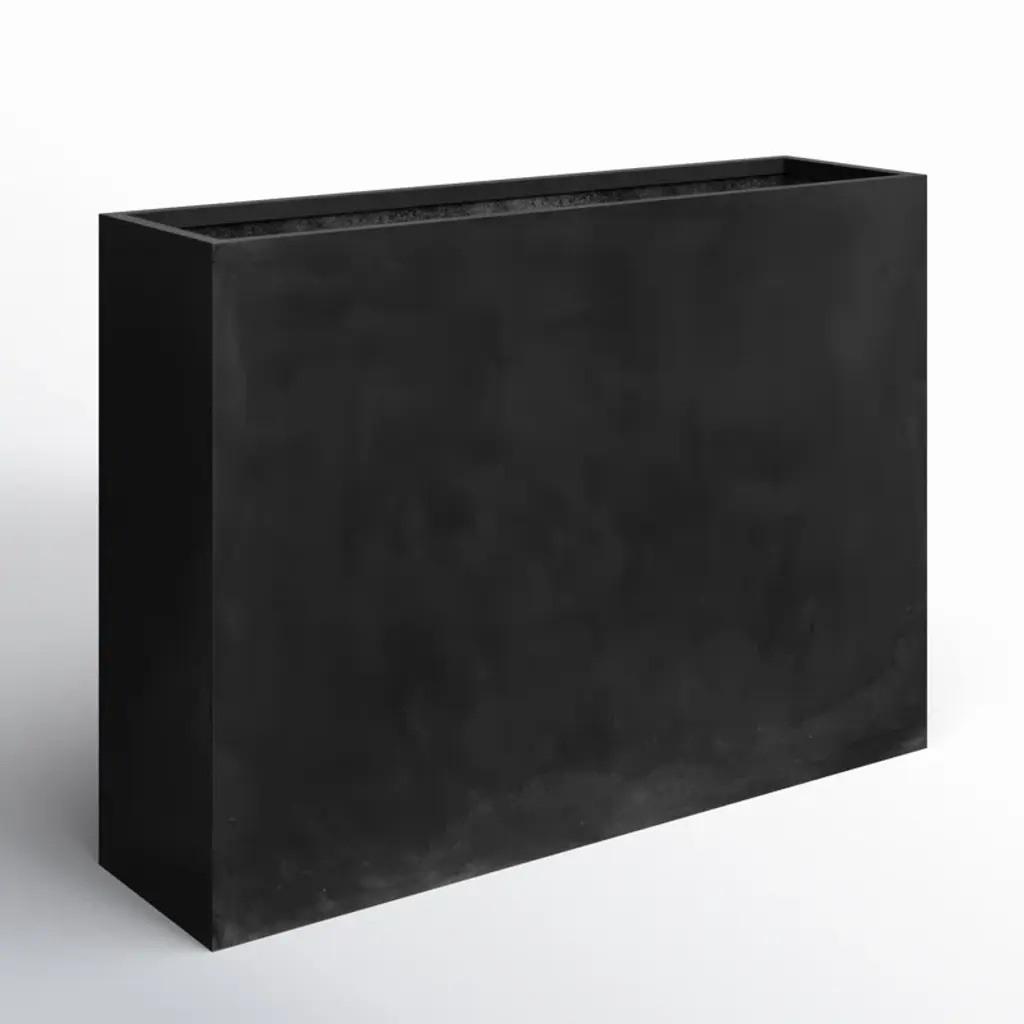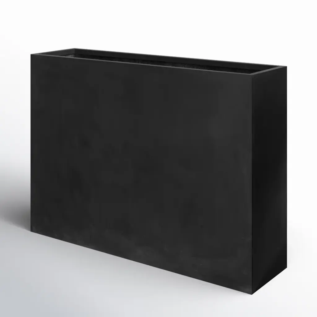 This handmade planter box houses your favorite plants in a modern style. Made from fiberglass and stone composite, it features a rectangular silhouette with sleek lines and a black finish that complements decor styles from traditional to industrial. This planter is weather-resistant and resistant to frost and UV rays, so it's great for use on your patio or in your sunroom. Plus, it measures 35'' high and 49'' wide, ideal in larger spaces. We love that it provides enough space for a collection of seasonal perennials or your favorite succulents.