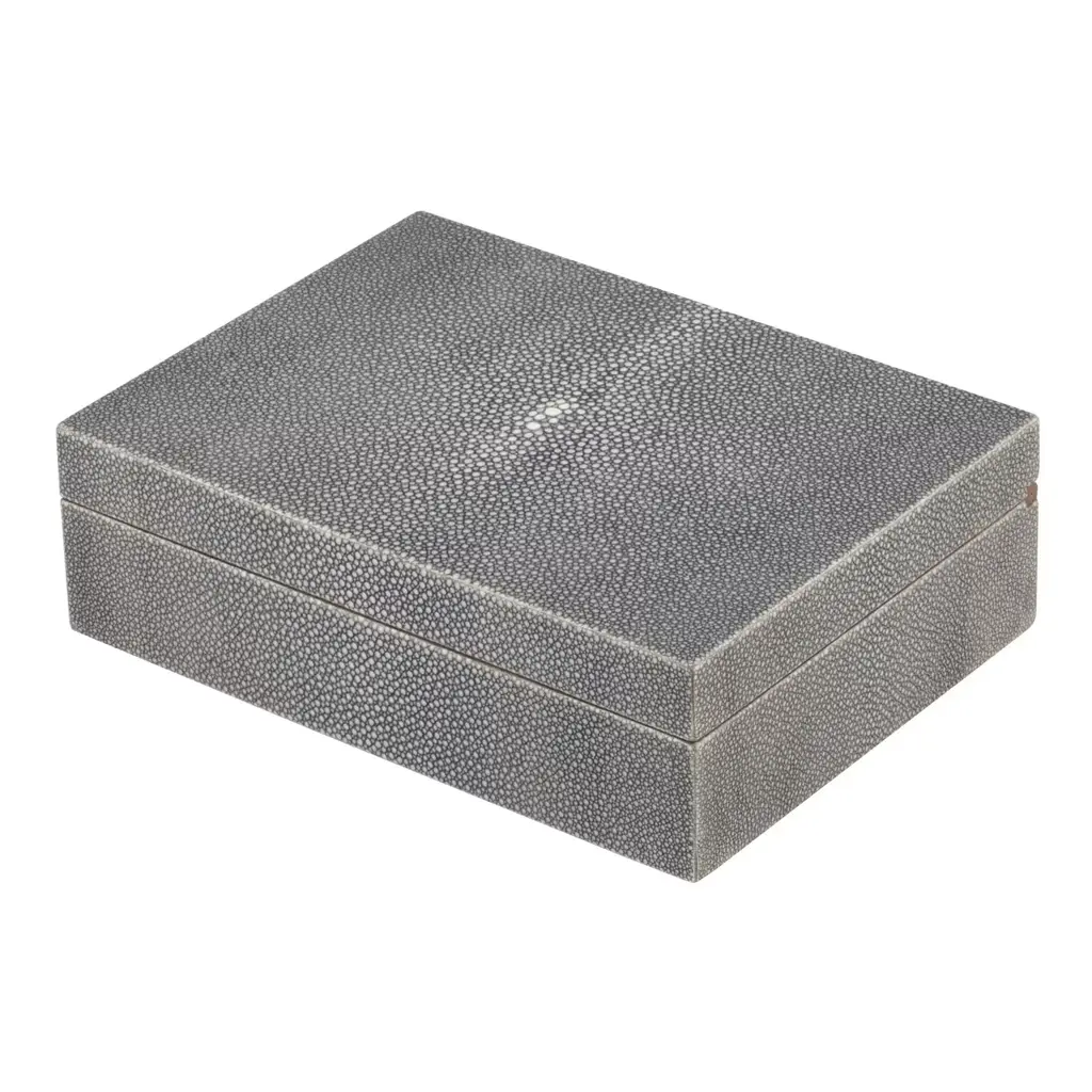 This exquisite box is entirely made in walnut wood whose hinges are also crafted in the same material. The exterior surfaces is covered in real shagreen leather that adds a luxurious touch to its texture. Inside, the box is equipped with eight compartments accessorized with padded cushions to store each a watch. The colors and type of the external upholstery can be customized, by choosing them among the large selection of options in GioBagnara's collection.