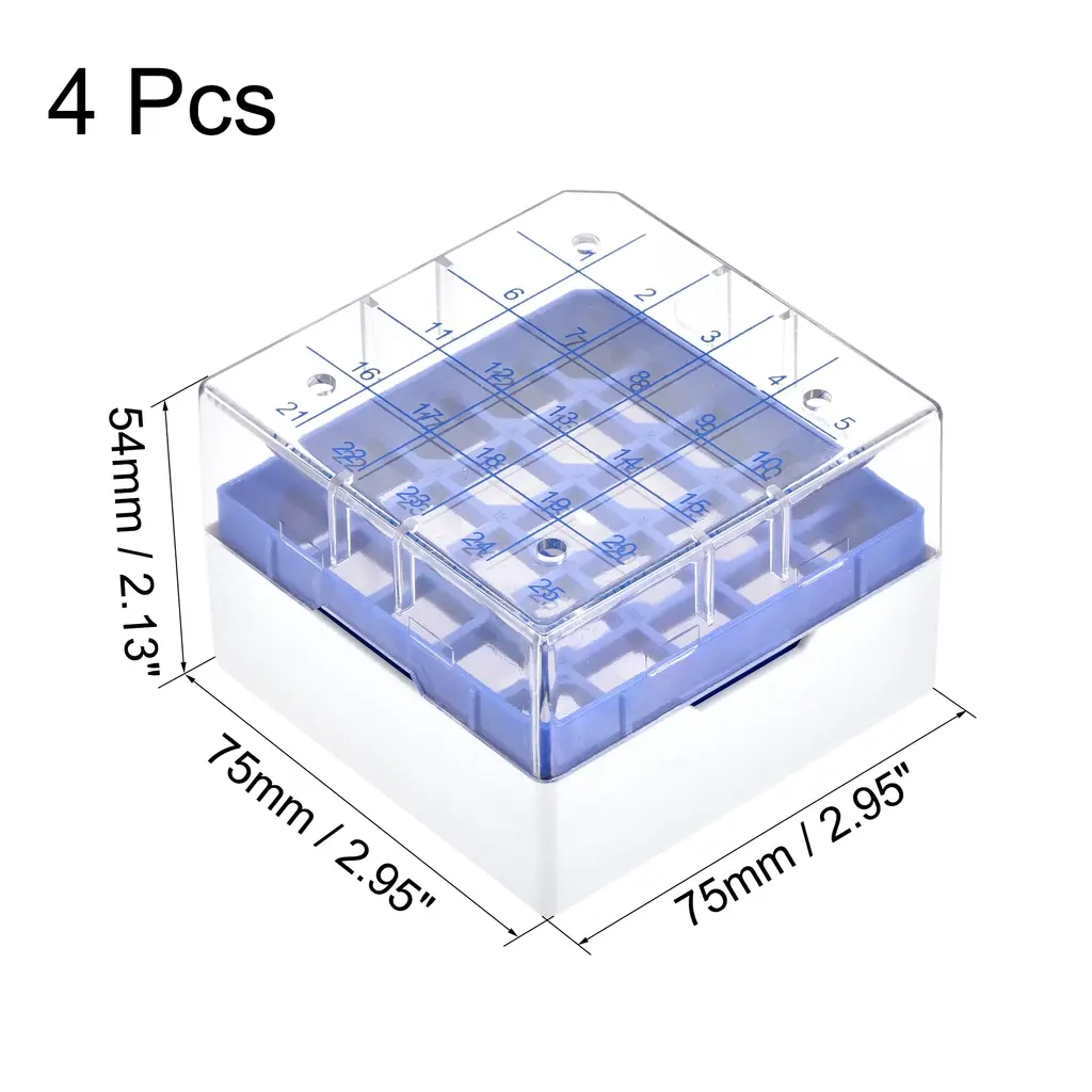 Freezer Tube Box 25 Places Rack For 1.8/2ml Microcentrifuge Tubes 4Pcs - Blue