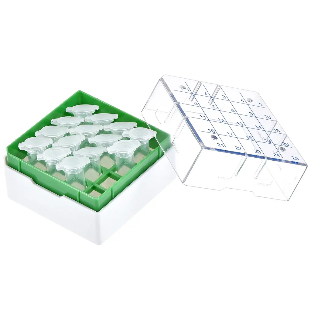 Freezer Tube Box 25 Places Rack For 1.8/2ml Microcentrifuge Tubes - Green